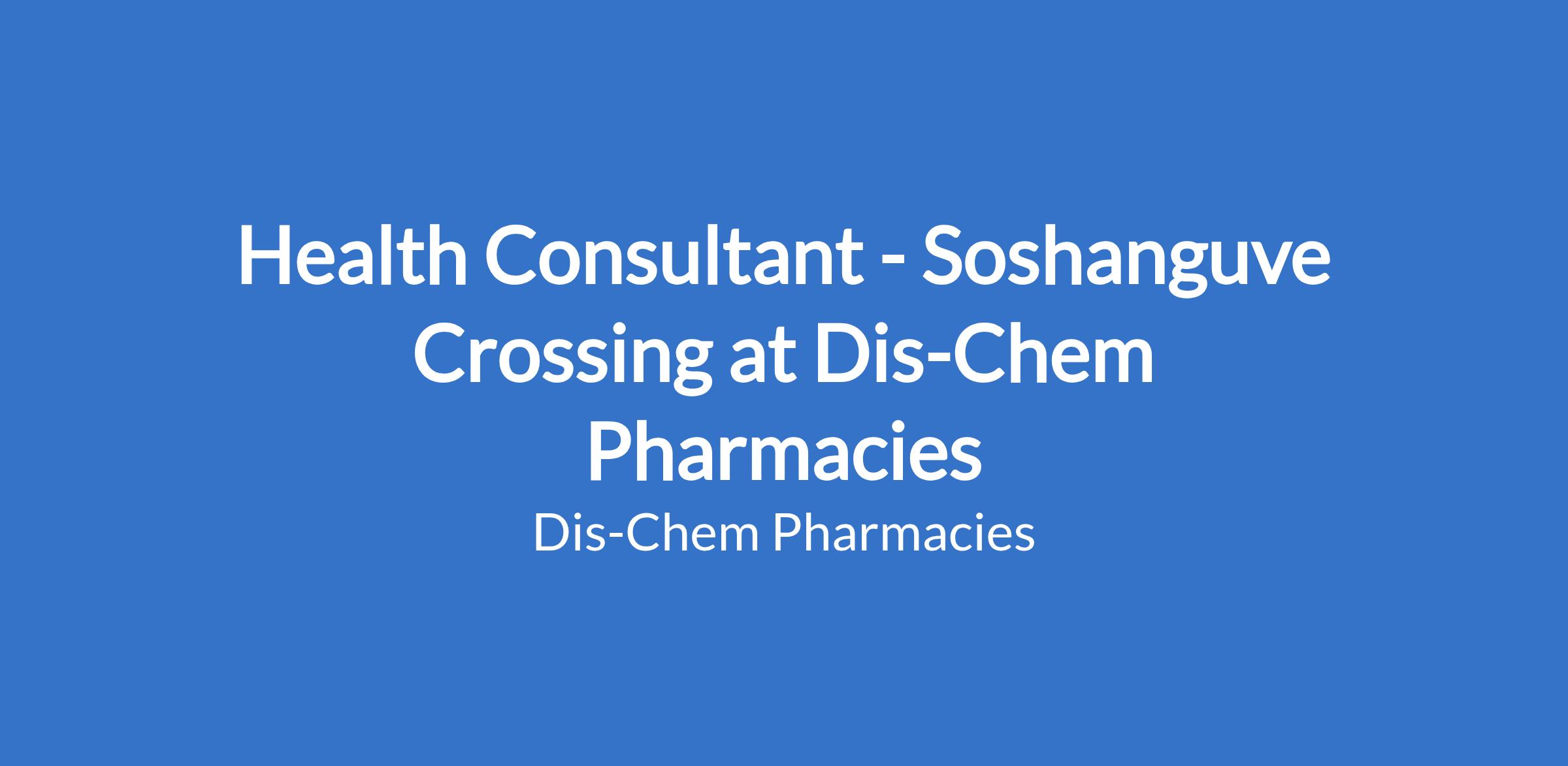 Dis-Chem Pharmacies' requires the services of a reputable Health Consultants specialising in Vitamins and Supplements for their Soshanguve Crossing .You will be responsible for effectively promoting and selling Dis-Chem Health Focus products through consistent customer service,