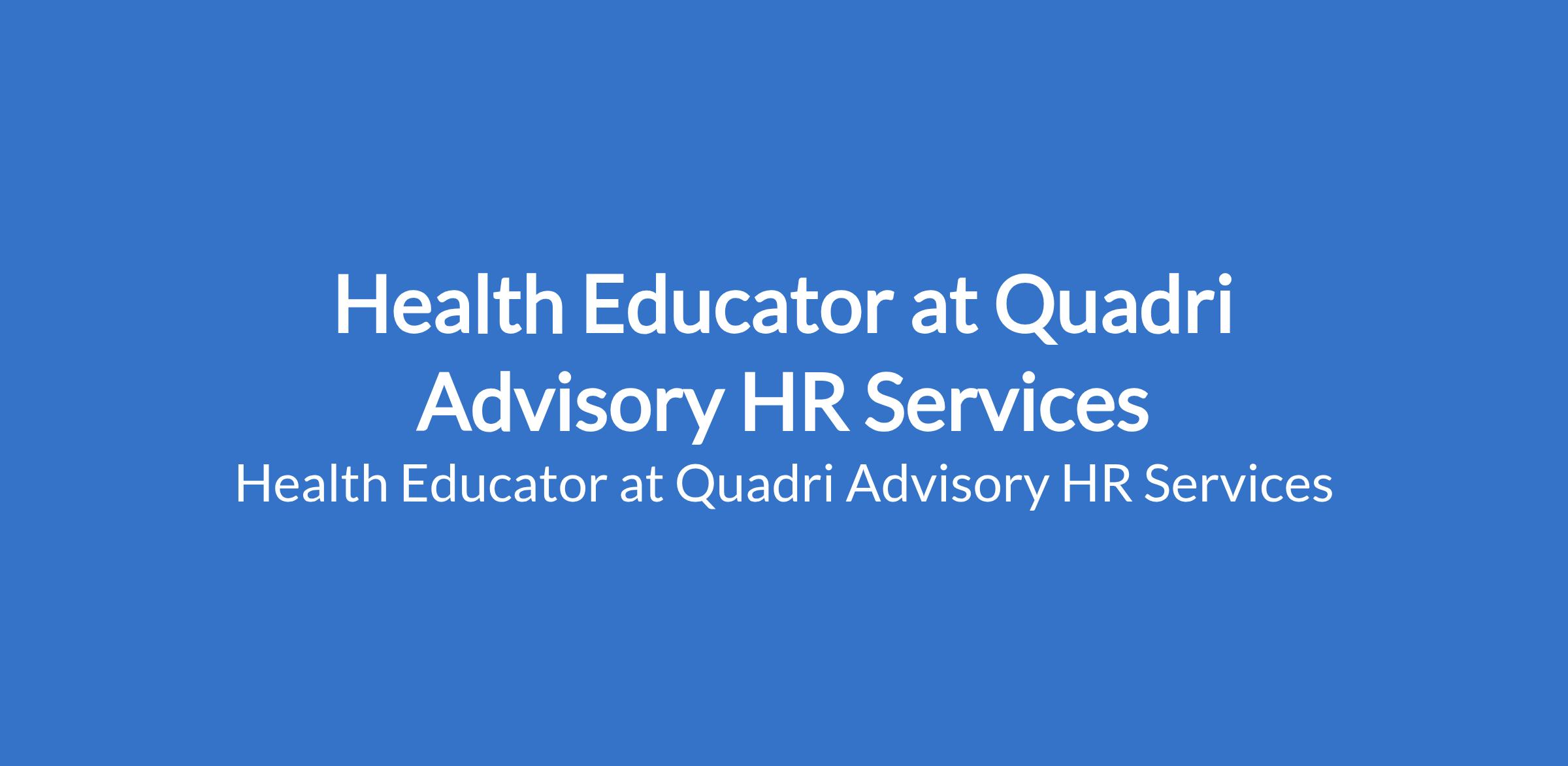 Quadri Advisory HR Services is recruiting to fill the position of: Health Educator. The position is located in Lagos State. Salary: N100,000 - N250,000 per month. Interested candidates should possess relevant qualifications with proven work experience as a Health Educator or similar role.