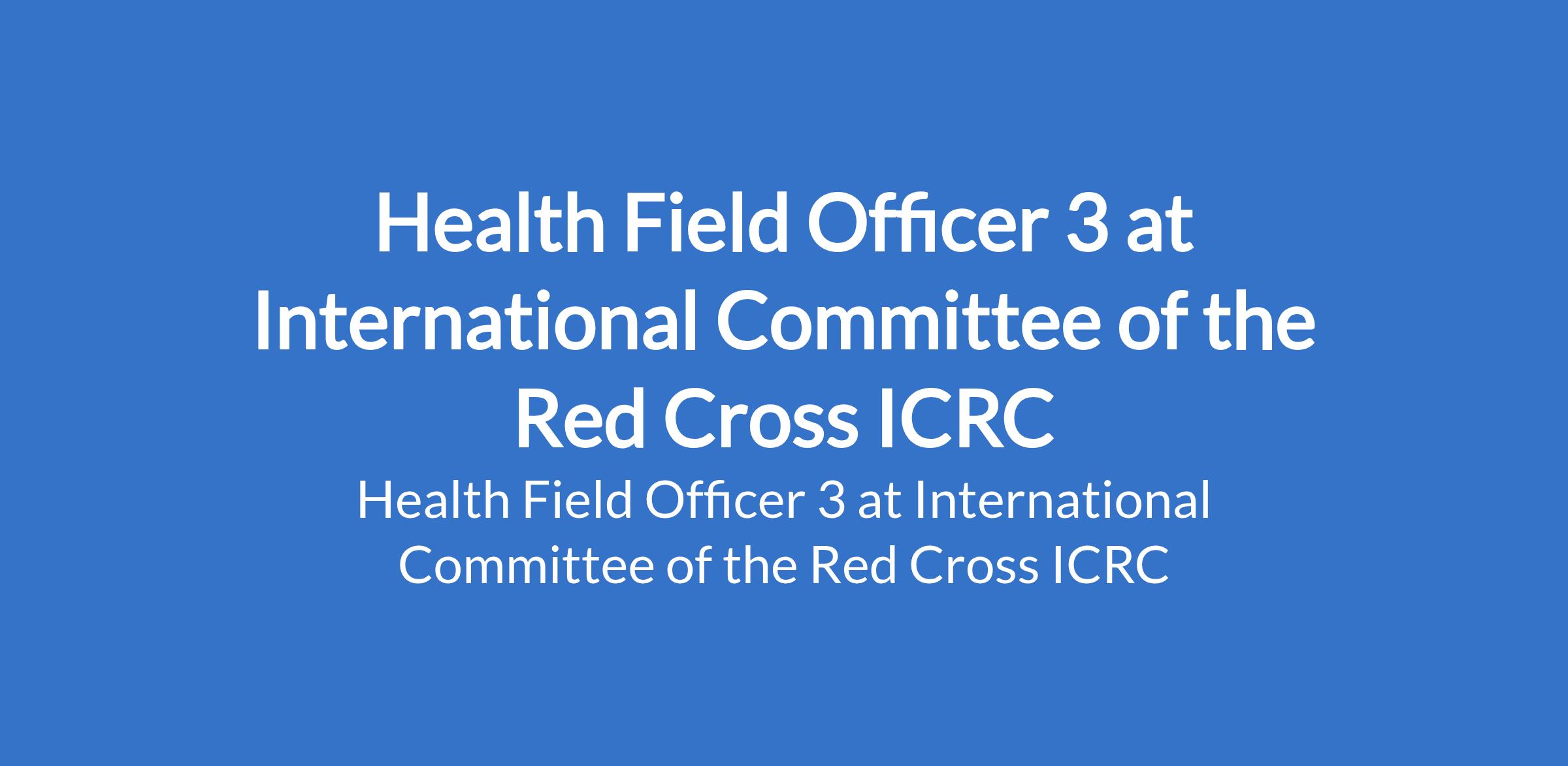 International Committee of the Red Cross ICRC is recruiting to fill the position of: Health Field Officer 3. The position is located in Abuja (FCT). Interested candidates should possess a University Degree in medicine (qualified medical doctor) with a minimum of 5 years clinical experience with minimum of 1 year working in Public Health Sector, preferably with the ICRC or with good knowledge of ICRC activities.