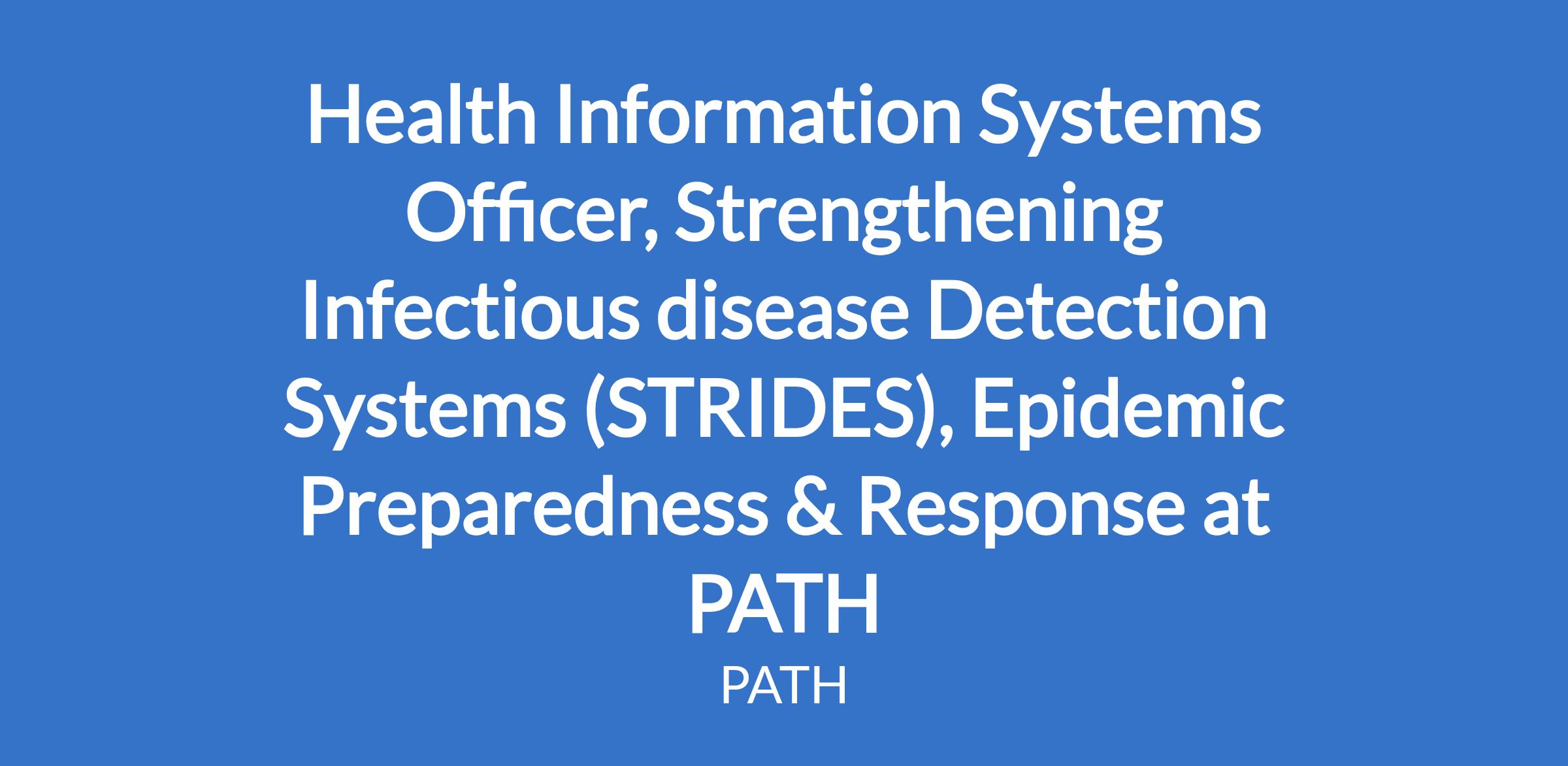 Health Information Systems Officer, Strengthening Infectious disease Detection Systems (STRIDES), Epidemic Preparedness & Response at PATH
