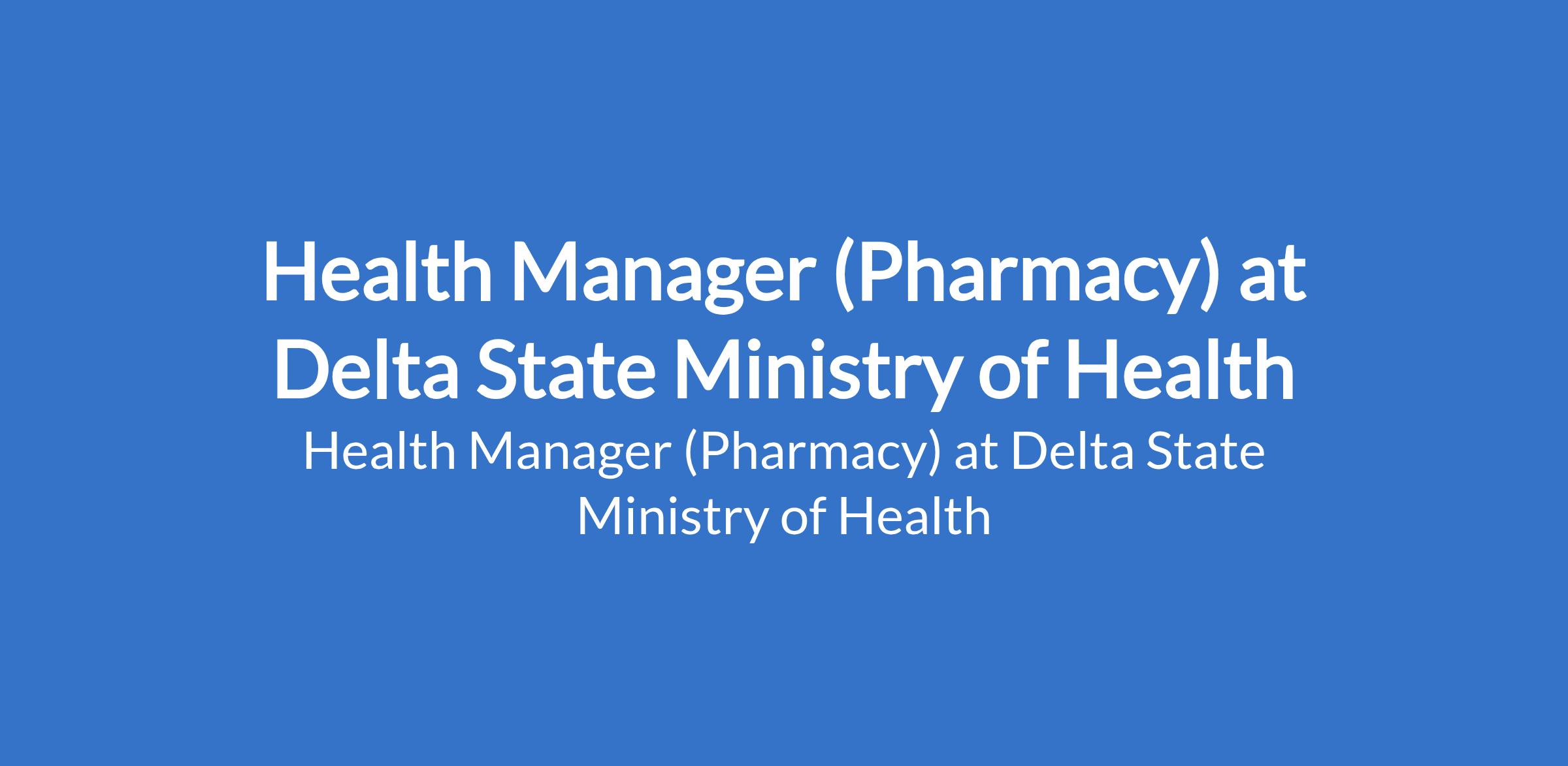 Delta State Ministry of Health is inviting applications from suitable candidates to fill the position of: Health Manager (Pharmacy). Interested candidates should possess a B.Pharm of equivalent, recognized by PCN, with at least, 5 years relevant experience.