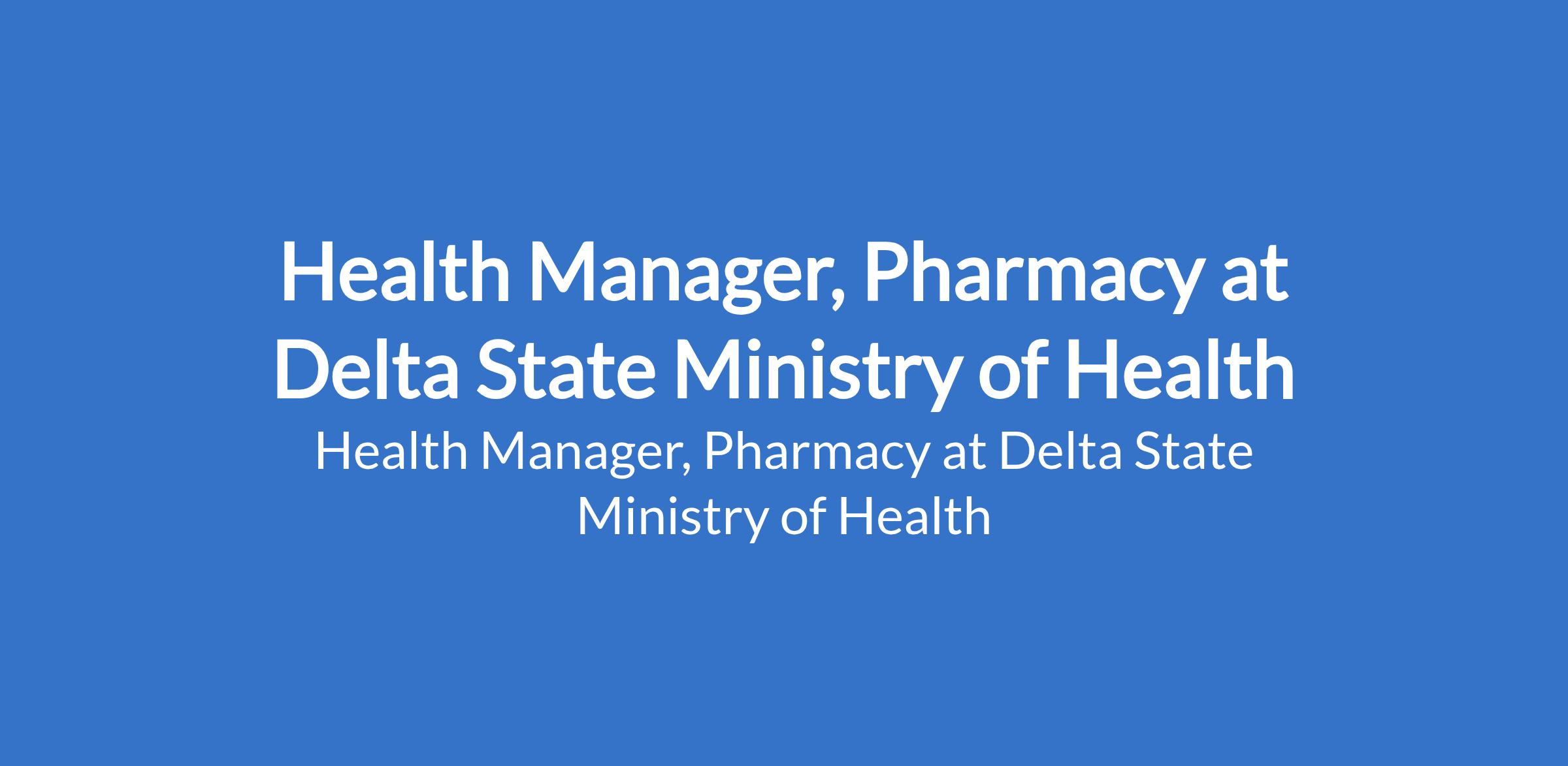 Health Manager, Pharmacy at Delta State Ministry of Health