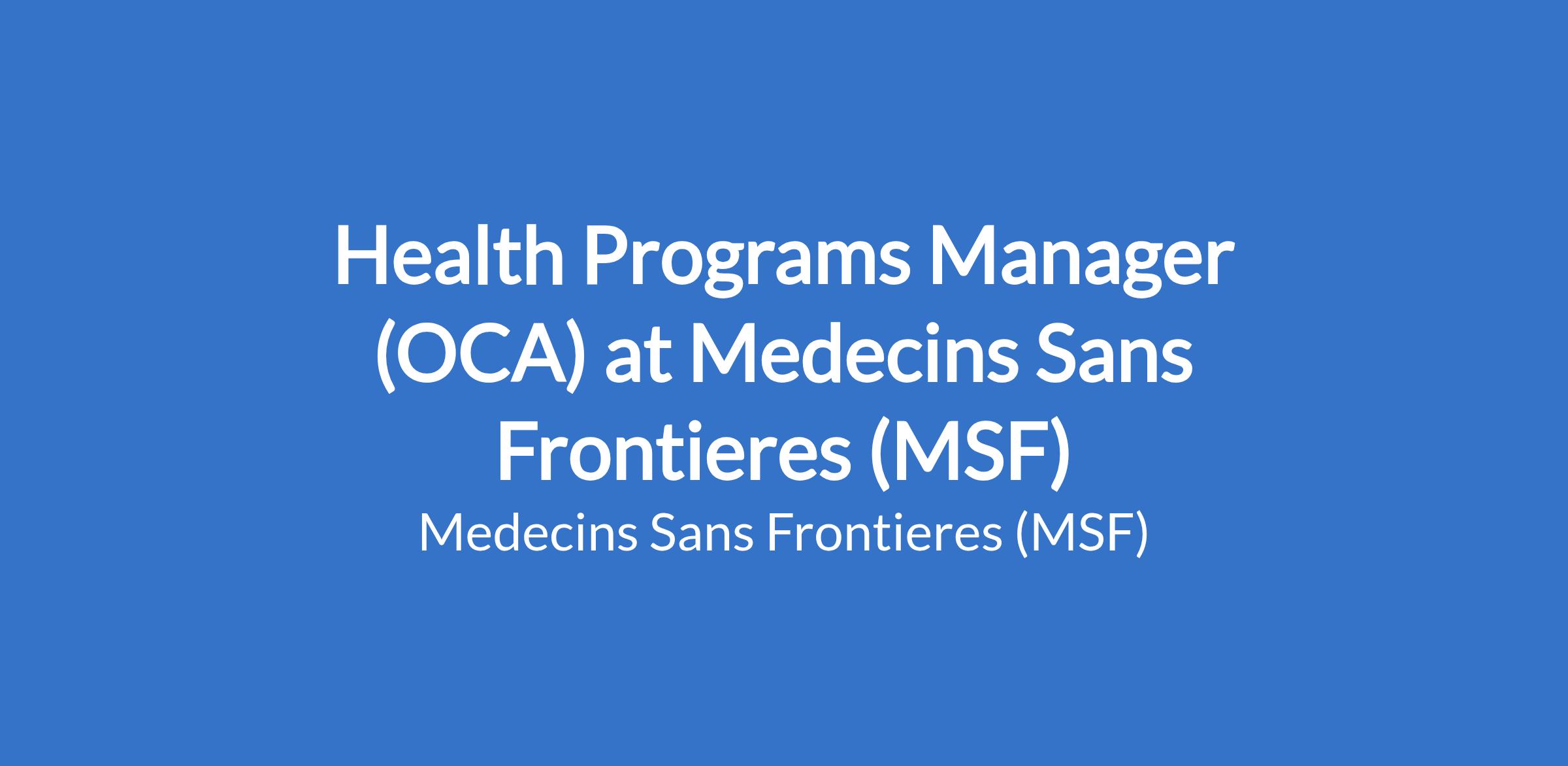 This position will be hierarchically and functionally accountable to Health Programs Manager Coordinator