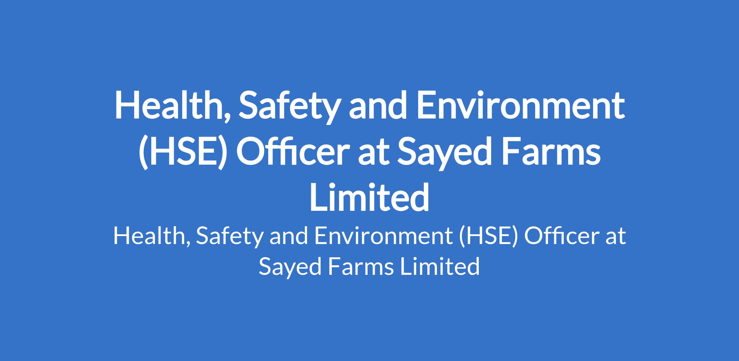 Sayed Farms Limited is recruiting to fill the position of: Health, Safety and Environment (HSE) Officer. The position is located in Ibadan, Oyo State. Interested candidates should possess a BSc in Environmental Science, Occupational Health & Safety, Engineering, or a related field with a minimum of five (5) years of experience from manufacturing companies.
