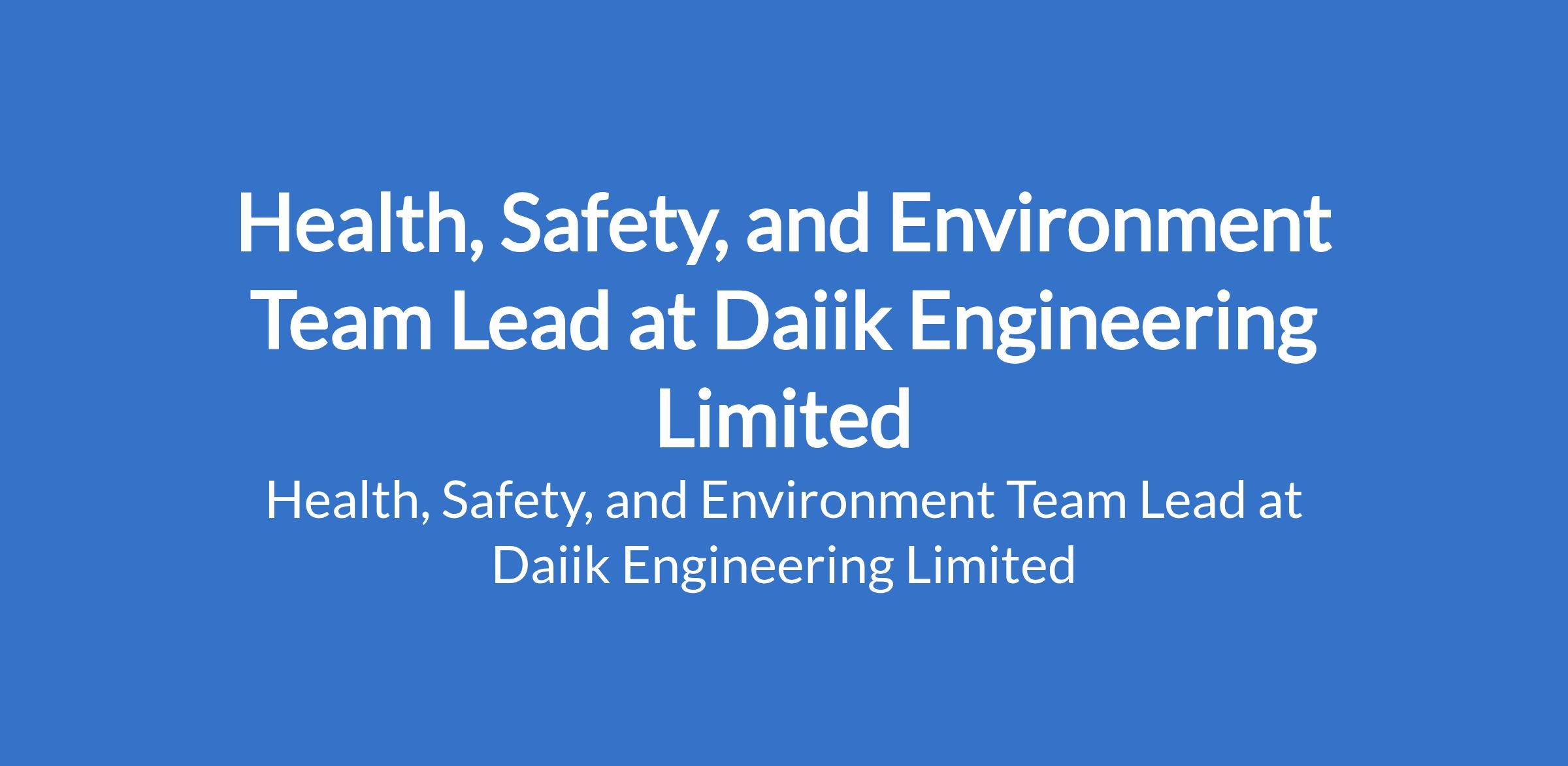 Daiik Engineering Limited is recruiting to fill the position of: Health, Safety, and Environment (HSE) Team Lead. The position is located in Bonny, Rivers State. Interested candidates should possess a Bachelors Degree in Engineering, Health & Safety, or relevant field with a significant experience (often 5 8+ years) in HSE management within the oil and gas sector.