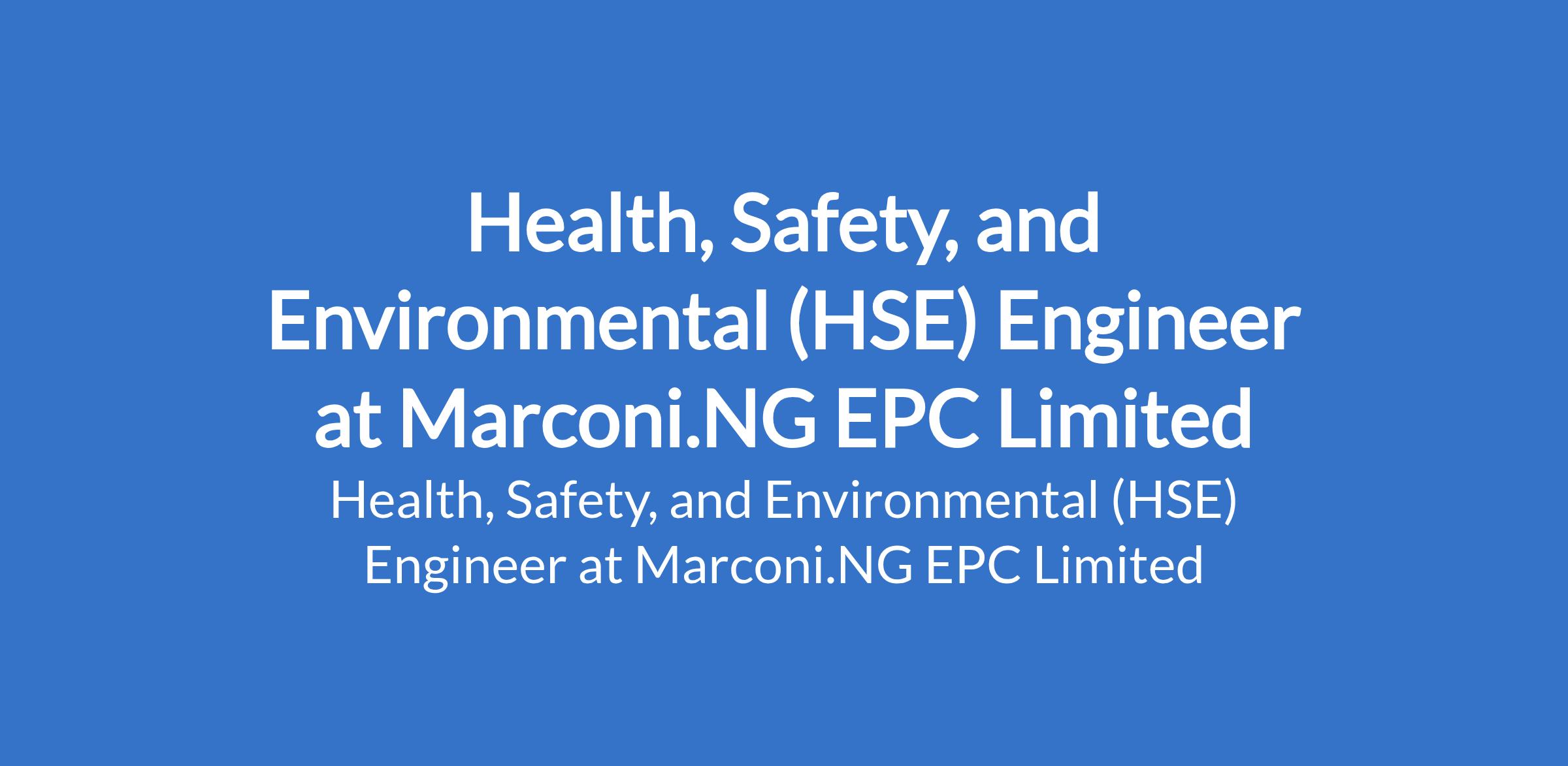 Marconi.NG EPC Limited is recruiting to fill the position of: Health, Safety, and Environmental (HSE) Engineer. The position is located in Port Harcourt, Rivers State. Interested candidate should possess a Bachelors Degree in Environmental, Safety, Mechanical, Chemical, or related Engineering disciplines with a minimum of 5 years experience in HSE engineering on EPC or construction projects.