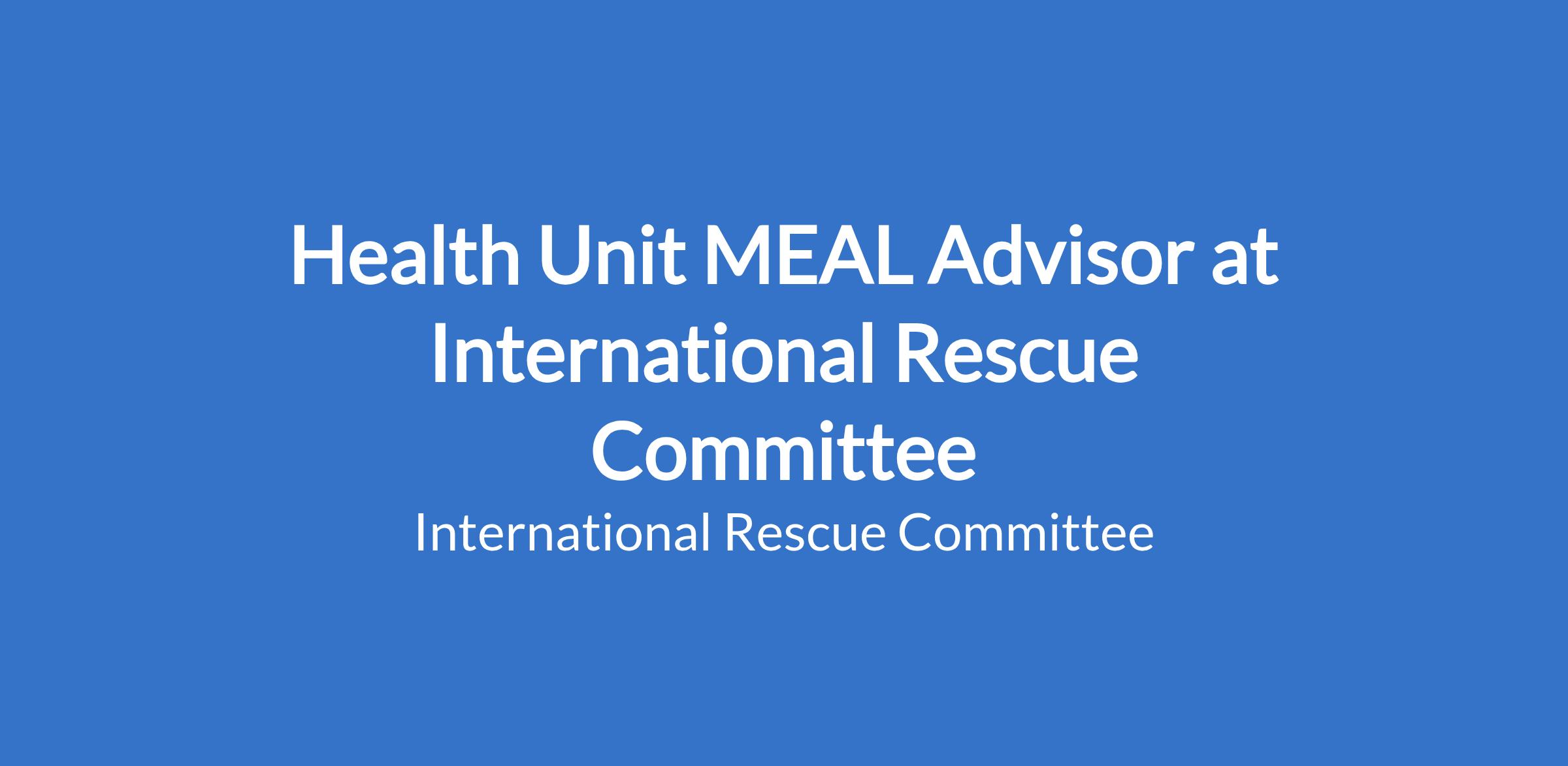 MEAL tools. The HU MEAL Advisor will also provide MEAL Advisory support for Health Unit and country led evaluations and research projects. The specific responsibilities include:
