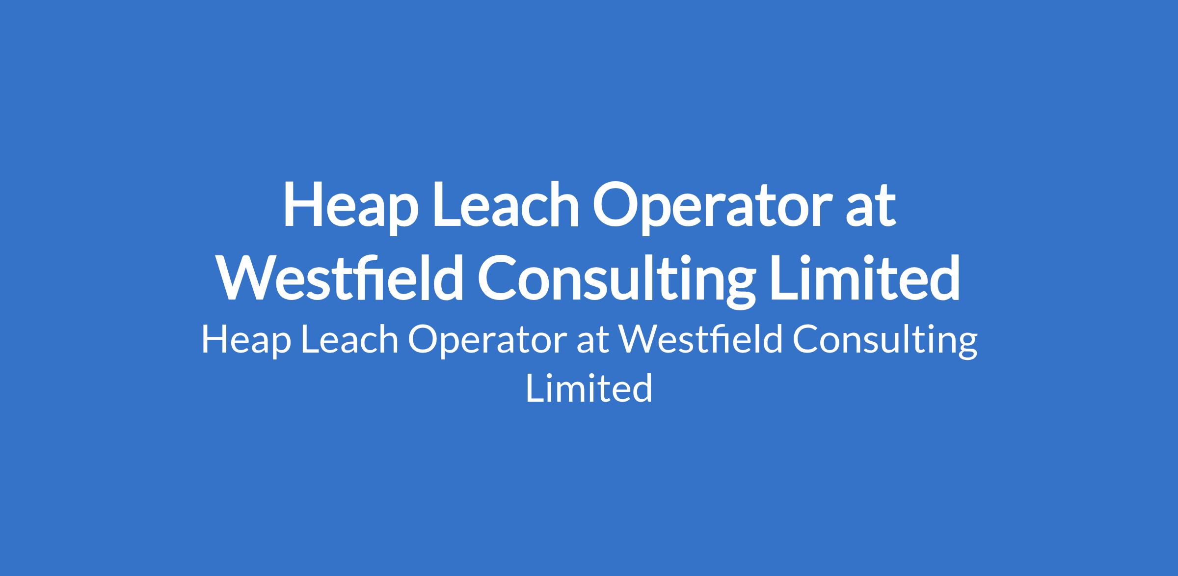 Westfield Consulting Limited - Our client, a Real Estate, Energy, Agriculture, Mining, Maritime and Aviation company is recruiting to fill the position of: Heap Leach Operator. The position is located in Lapai, Rivers State. Interested candidates should possess relevant qualifications with a minimum of 2 years experience in the position being applied for.