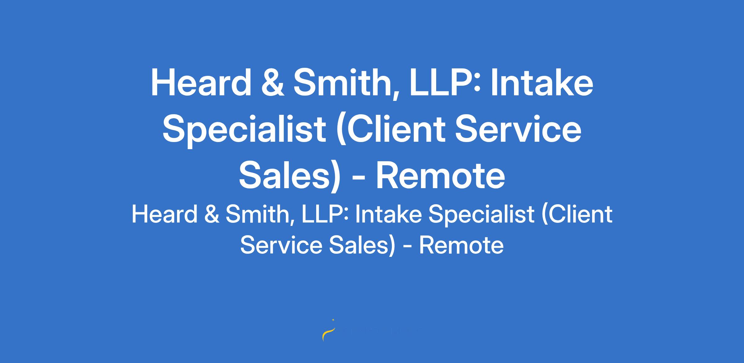 To apply: https://weworkremotely.com/remote-jobs/heard-smith-llp-intake-specialist-client-service-sales-remote-5