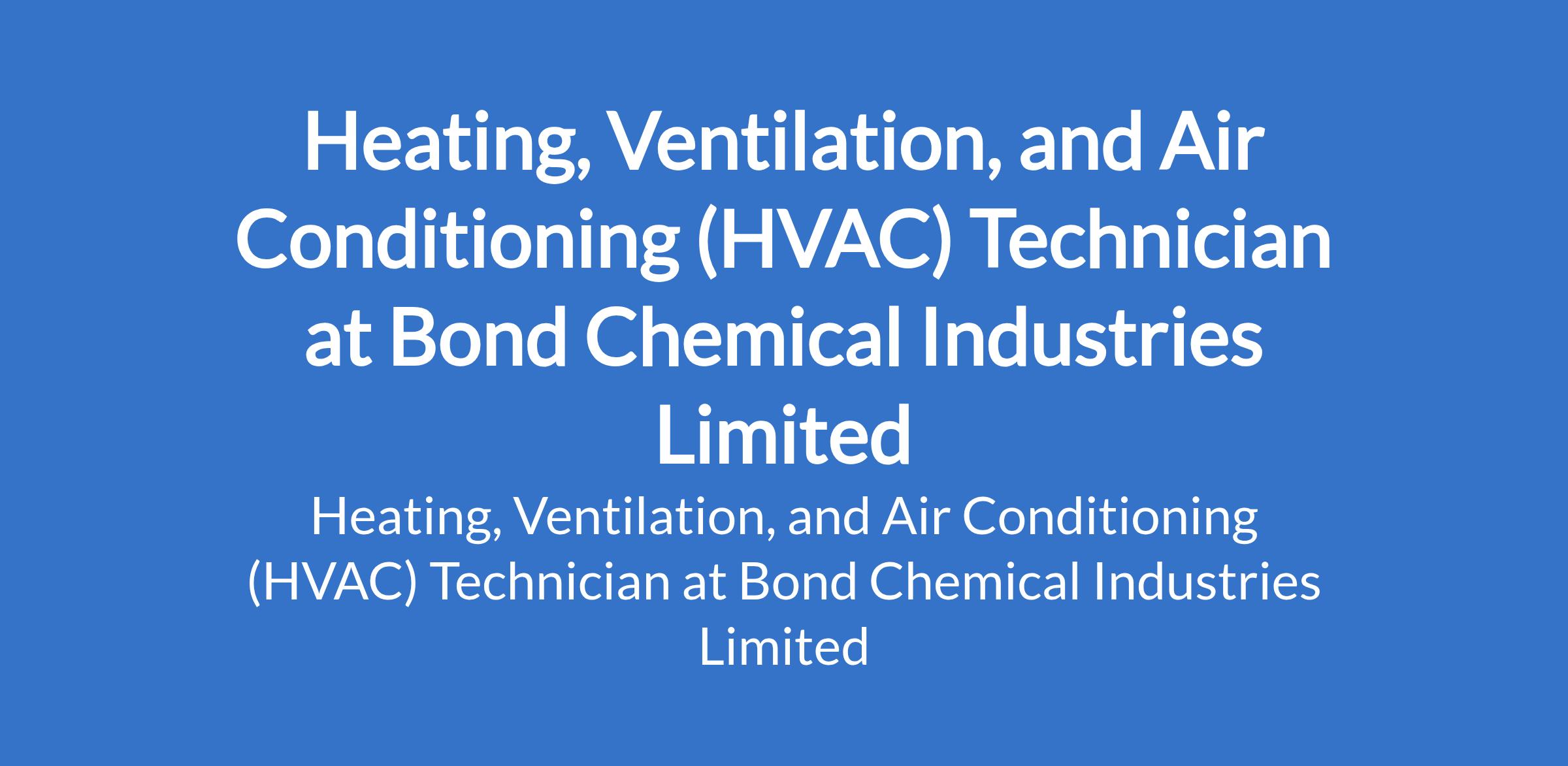 Bond Chemical Industries Limited is recruiting to fill the position of: Heating, Ventilation, and Air Conditioning (HVAC) Technician. The position is located in Ibadan Oyo, State. Interested candidates should possess a Technical Certification, Trade Test, OND, or HND in a technical field related to HVAC systems or mechanical engineering with at least 3 years of hands-on work experience in diagnosing, repairing, installing, and maintaining HVAC systems.