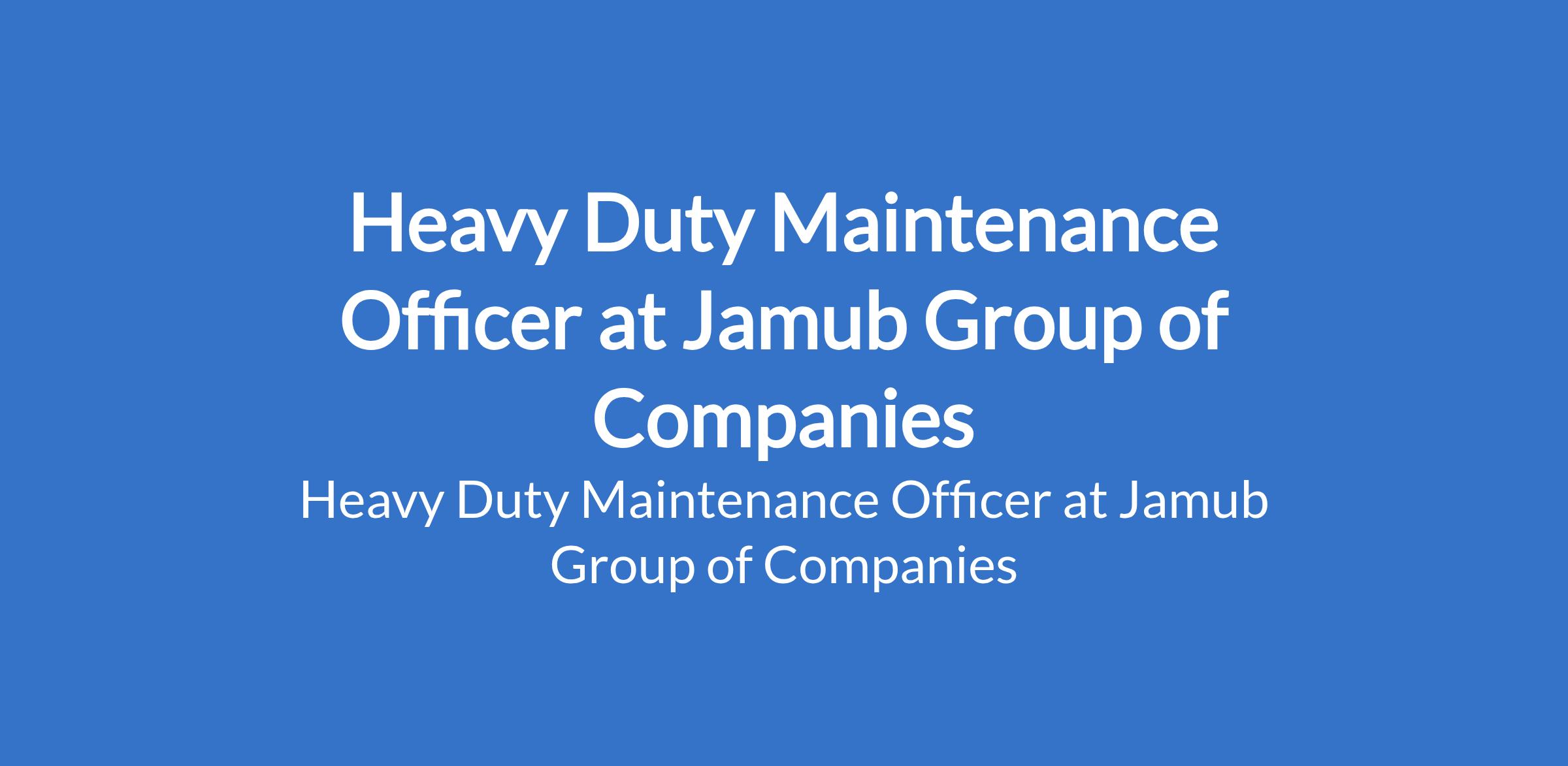 Jamub Group of Companies is recruiting to fill the position of: Heavy Duty Maintenance Officer. The position is located in Abuja. Interested candidates should possess a minimum of Trade Test Certificate / City & Guilds / OND in Mechanical Engineering, Plant Maintenance, Automobile Engineering, or a related technical discipline with a minimum of 6 years of hands-on experience maintaining and repairing heavy construction equipment and commercial vehicles in a construction, quarrying, or industrial environment.
