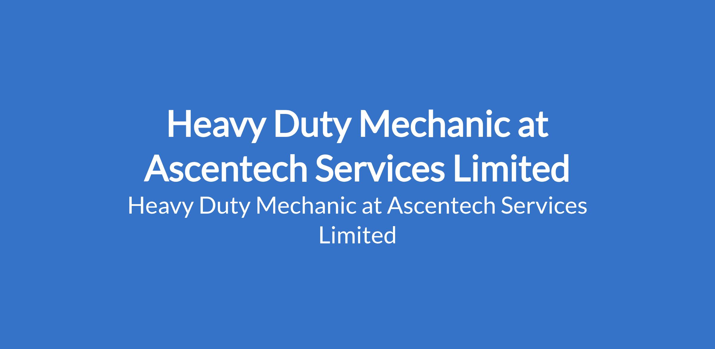 Ascentech Services Limited is recruiting to fill the position of: Heavy Duty Mechanic. The position is located in Ikoyi, Lagos State. Interested candidates should possess a Bachelor`s Degree with 5+ years experience (or vocational training / apprenticeship).