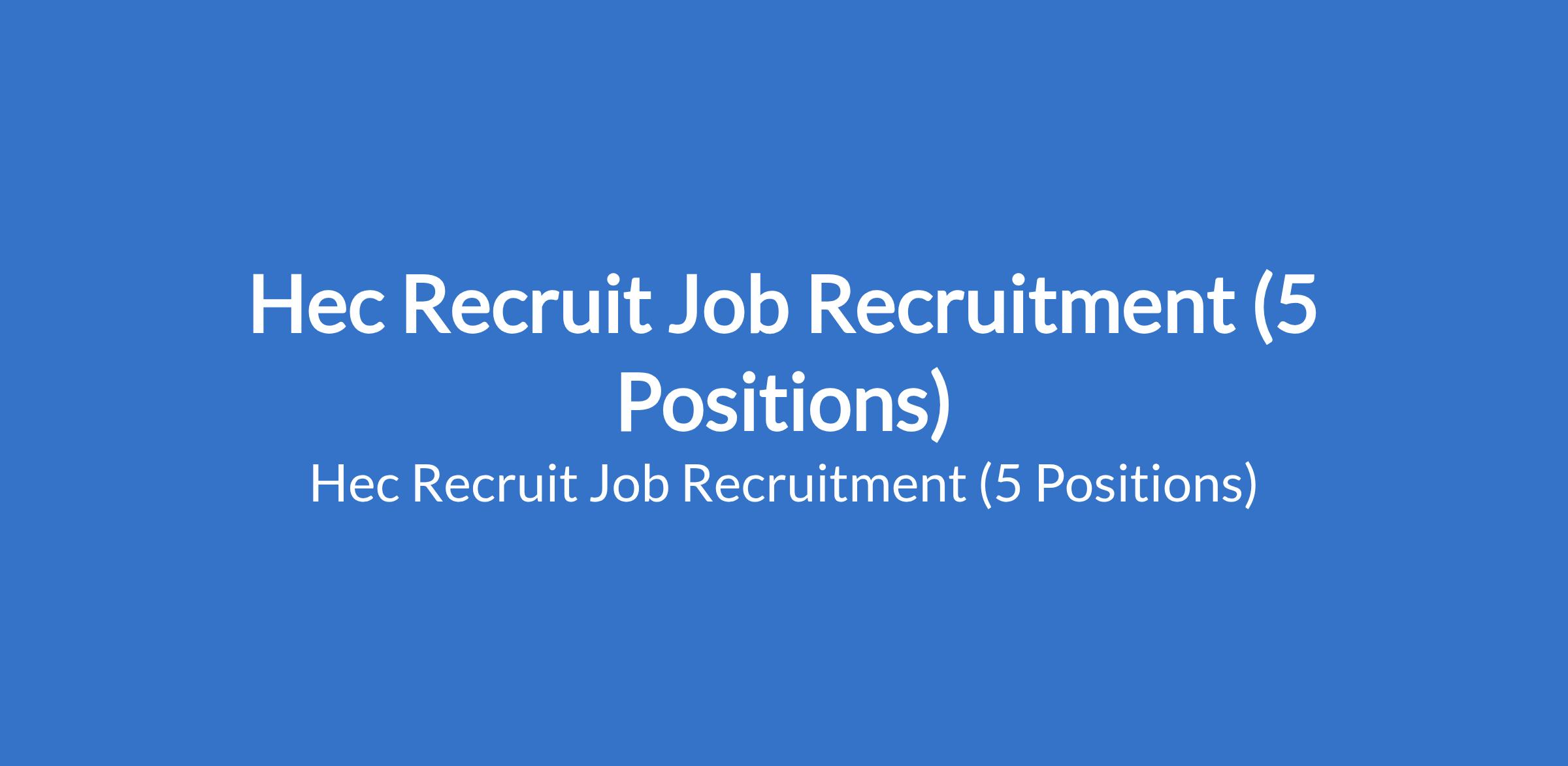 Hec Recruit is recruiting to fill the following positions in Abuja and Lagos State: Banking Business Development Manager, Business Development and Marketing Manager, Technical Assistant to the Managing Director, Waste Truck Driver, and Class Teacher.