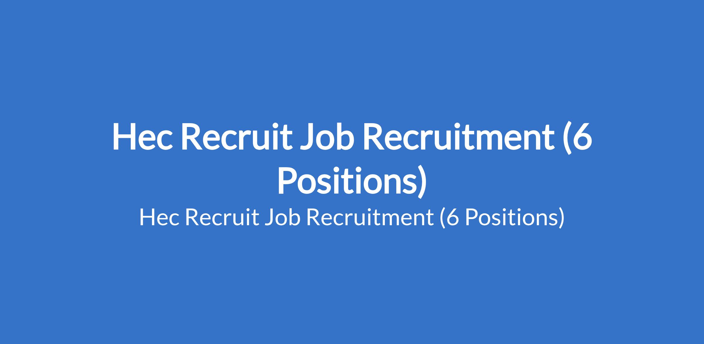 Hec Recruit is recruiting to fill the following positions in Abuja and Lagos State: Sales Representative, Banking Business Development Manager, Business Development and Marketing Manager, Technical Assistant to the Managing Director, Waste Truck Driver, and Class Teacher.