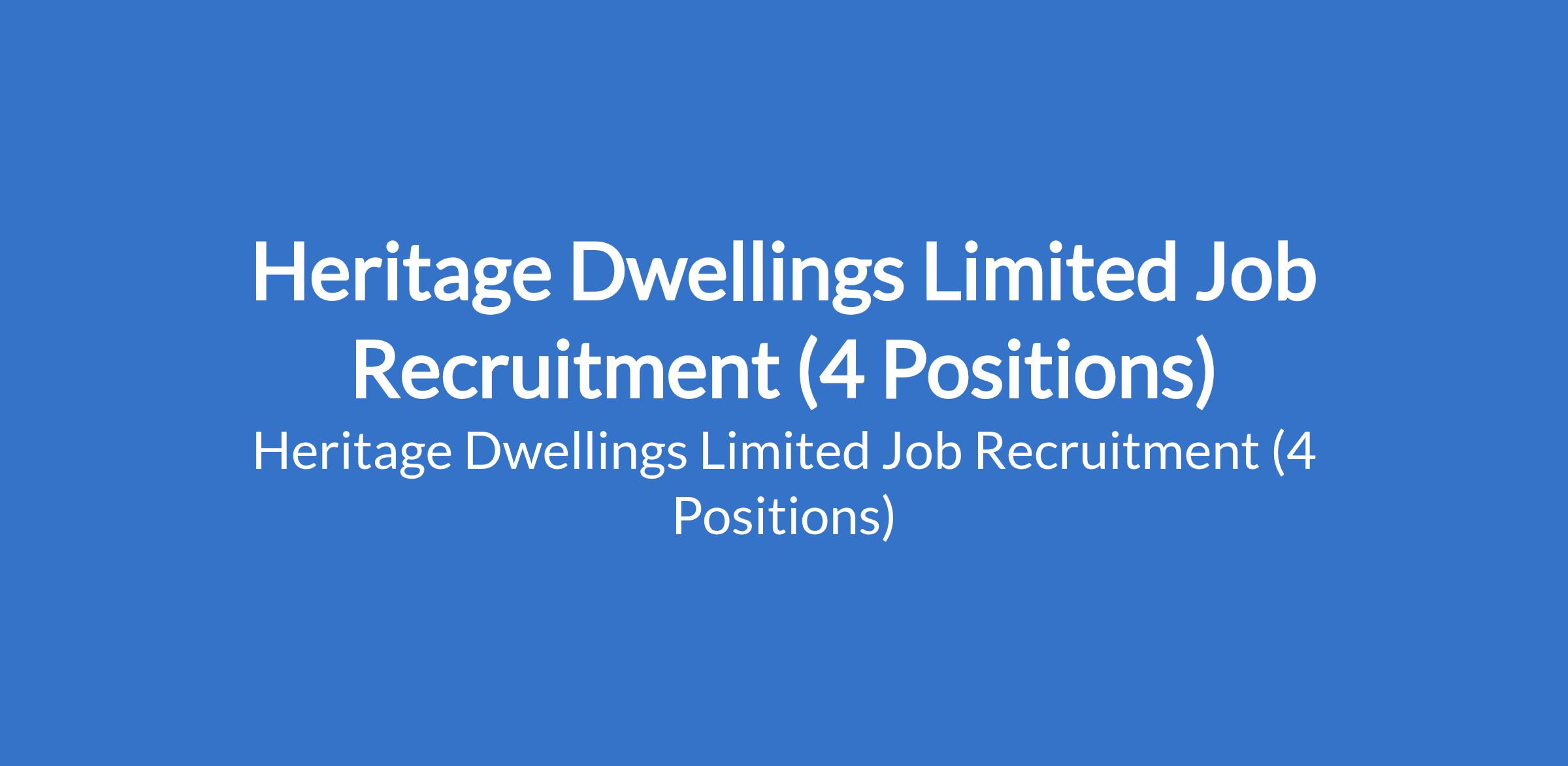 Heritage Dwellings Limited is recruiting suitably qualified candidates to fill the following positions in Lagos State: Legal Manager, Sales Officer (Real Estate / Property Sales), Assistant Project and Facility Manager, and Sales Officer (Real Estate / Property Sales & Marketing.