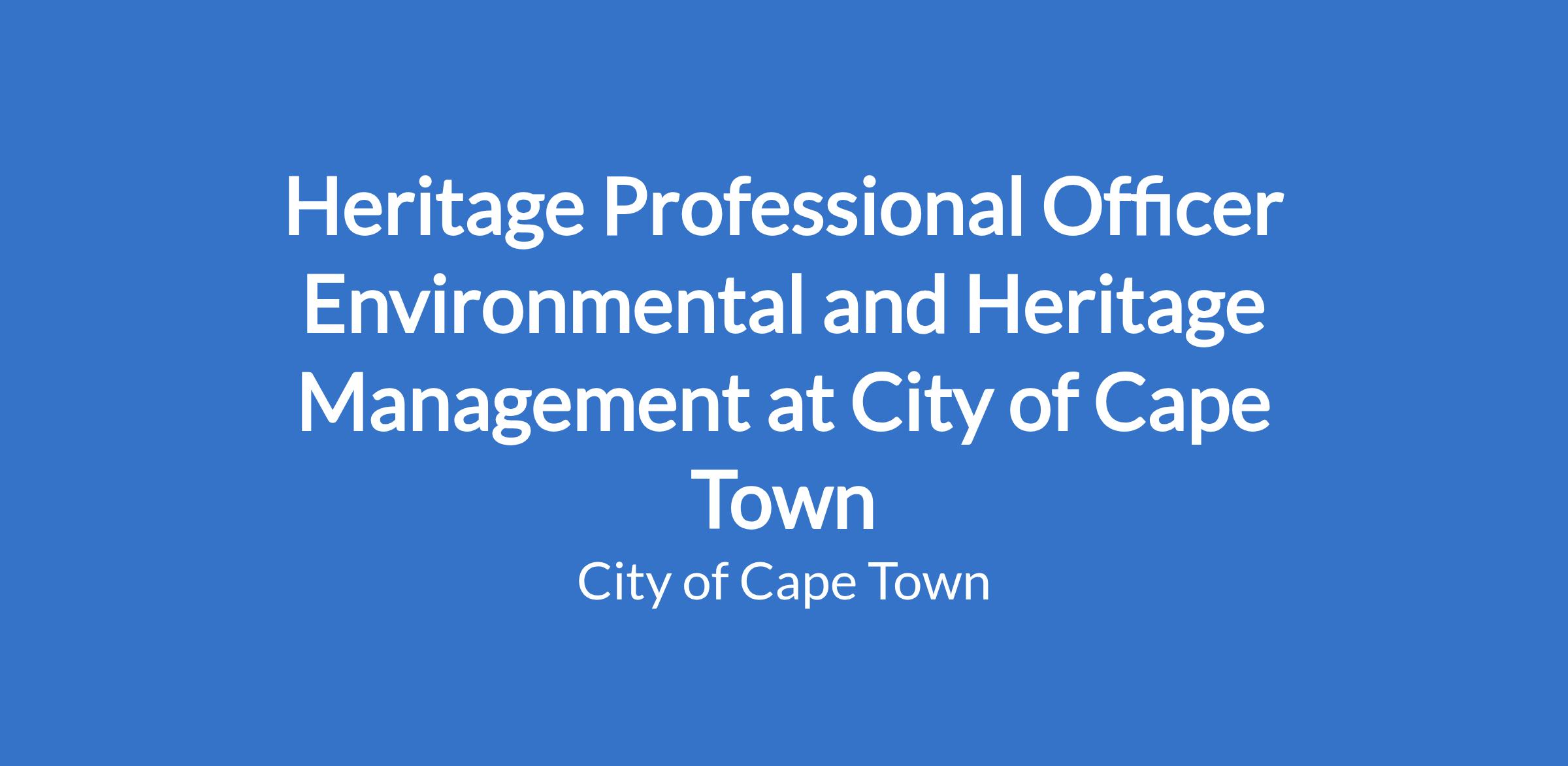 Heritage Professional Officer Environmental and Heritage Management at City of Cape Town