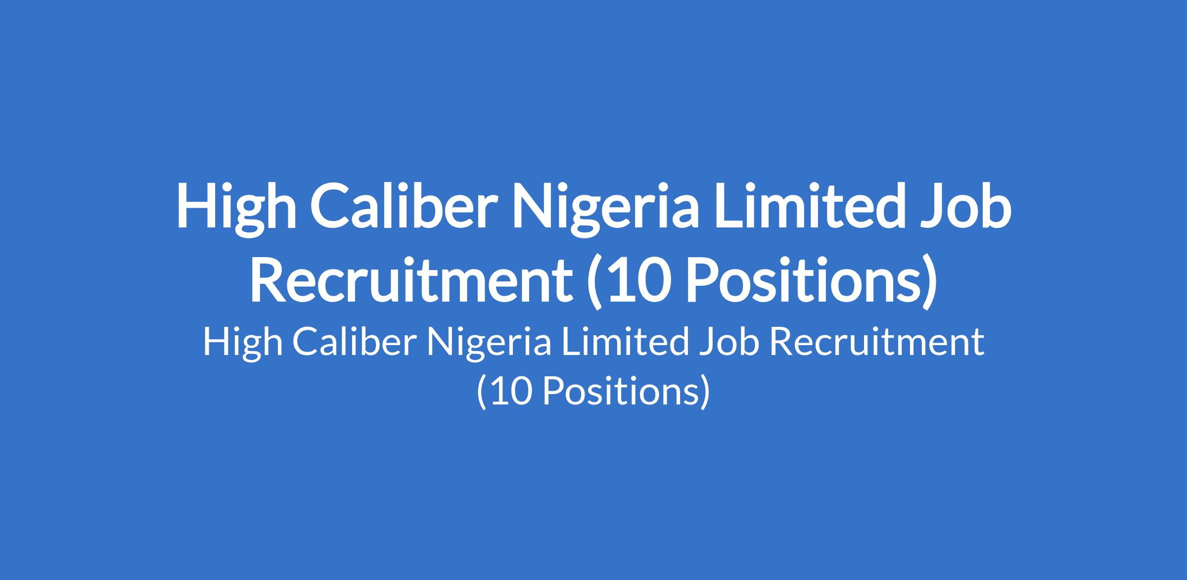 High Caliber Nigeria Limited is recruiting suitable candidates to fill the following positions in Lagos State: Indian / Chinese Chef, Industrial AC Technician, Executive Assistant, Van Sales Representative, Private Driver, Hostess, Cashier, Housekeeper, Grill Chef, and Restaurant Supervisor.