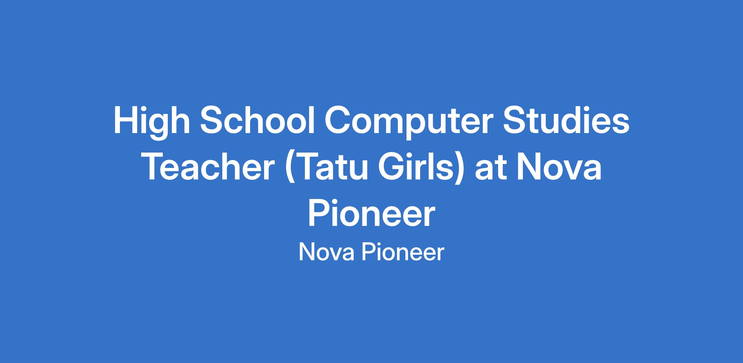 High School Computer Studies Teacher (Tatu Girls) at Nova Pioneer