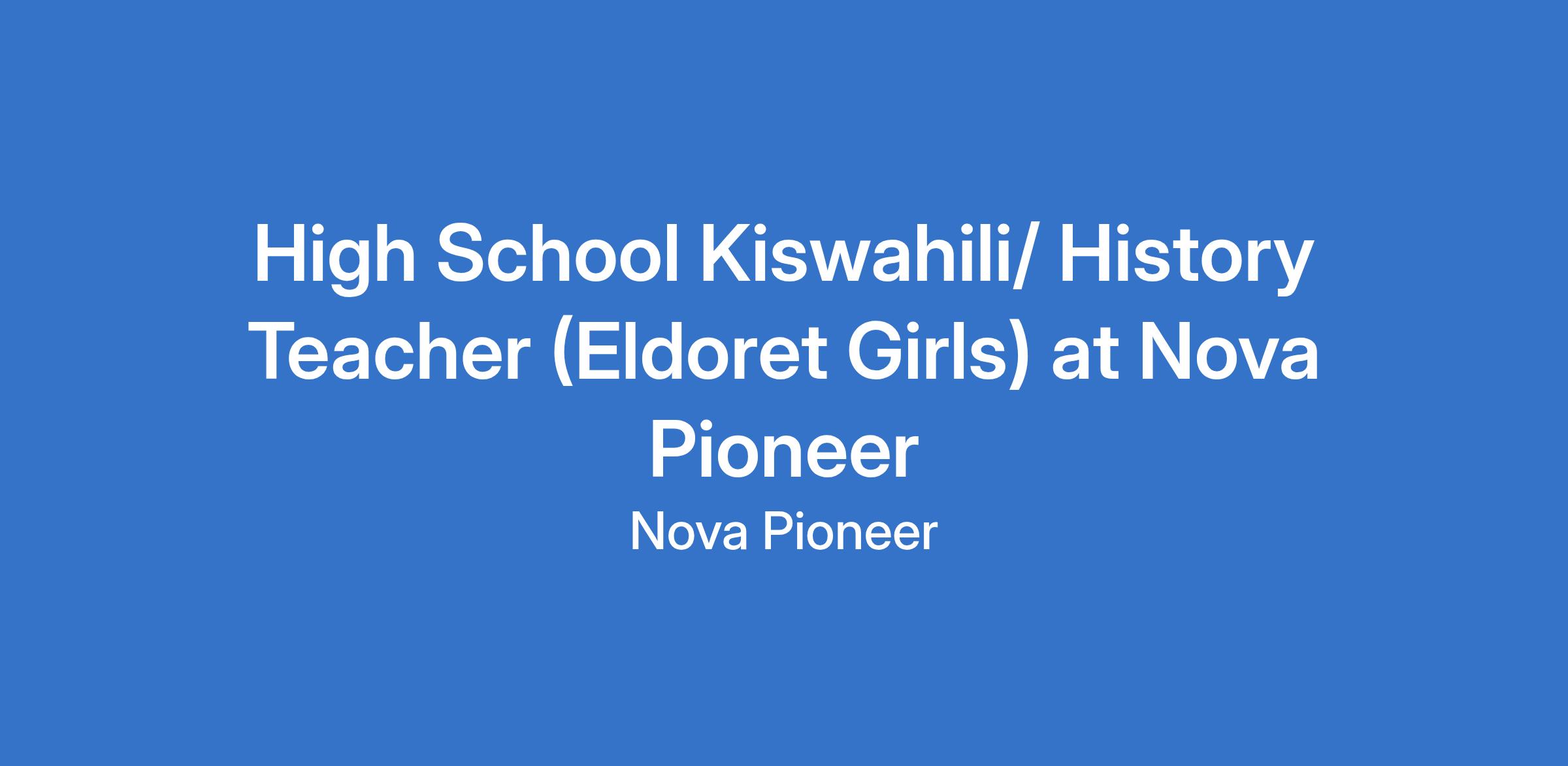High School Kiswahili/ History Teacher (Eldoret Girls) at Nova Pioneer