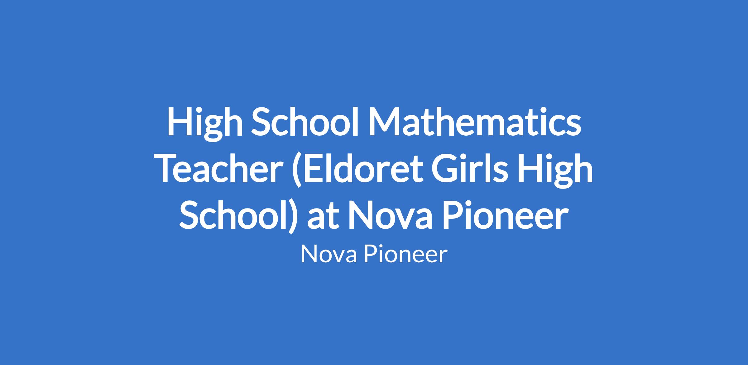 High School Mathematics Teacher (Eldoret Girls High School) at Nova Pioneer