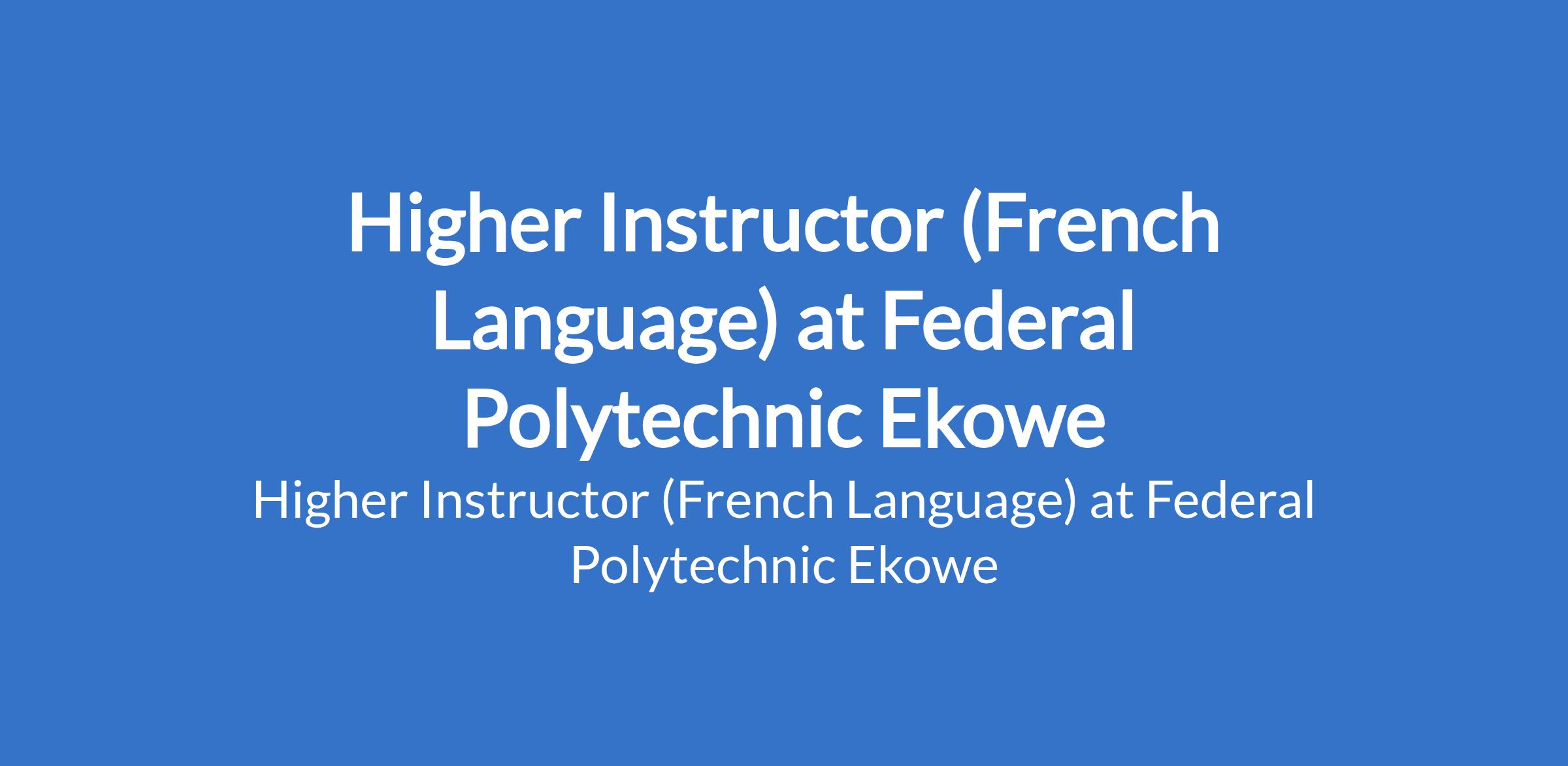 Higher Instructor (French Language) at Federal Polytechnic Ekowe