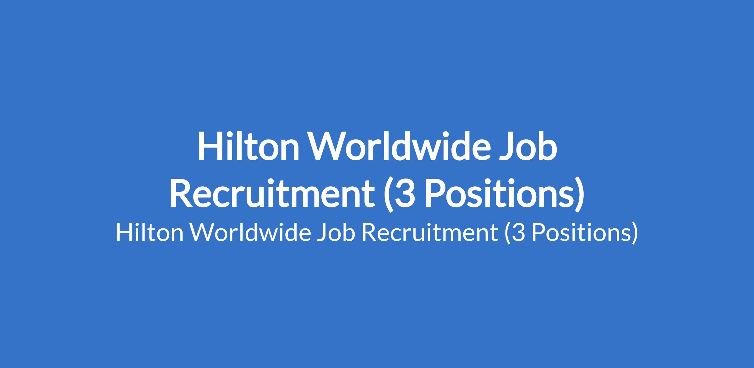 Hilton Worldwide Job Recruitment (3 Positions)