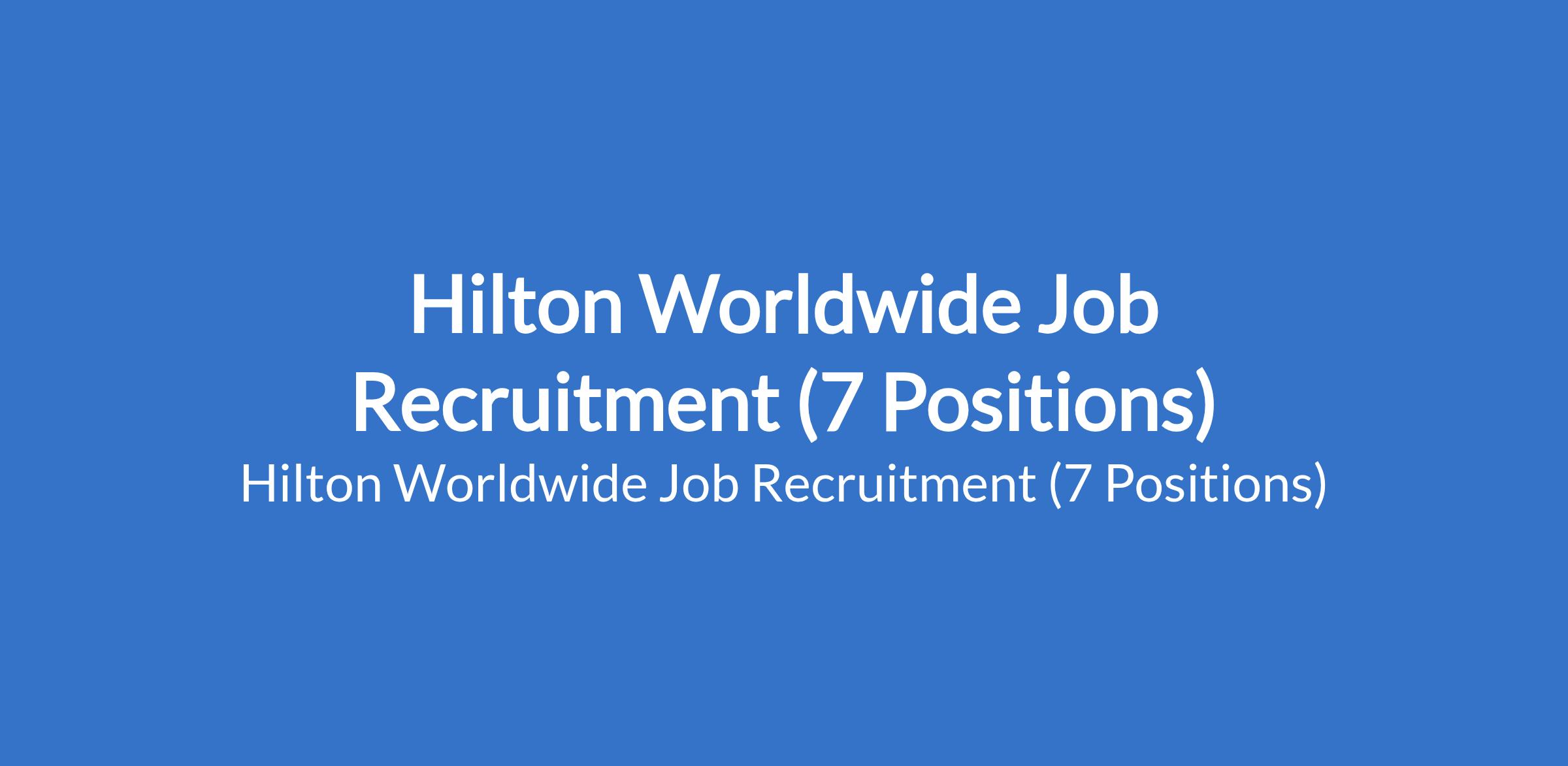 Hilton Worldwide Job Recruitment (7 Positions)