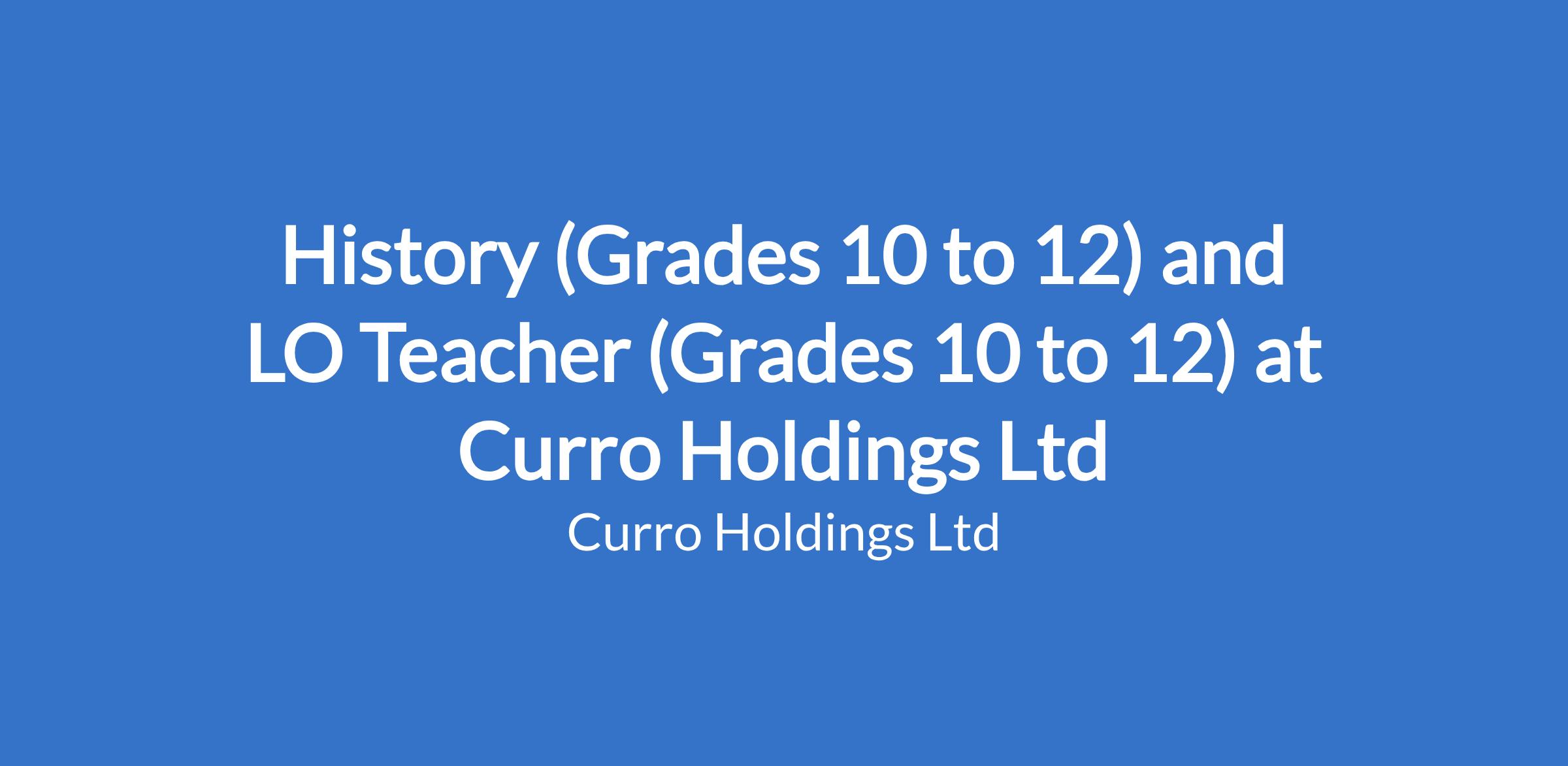 History (Grades 10 to 12) and LO Teacher (Grades 10 to 12) at Curro Holdings Ltd