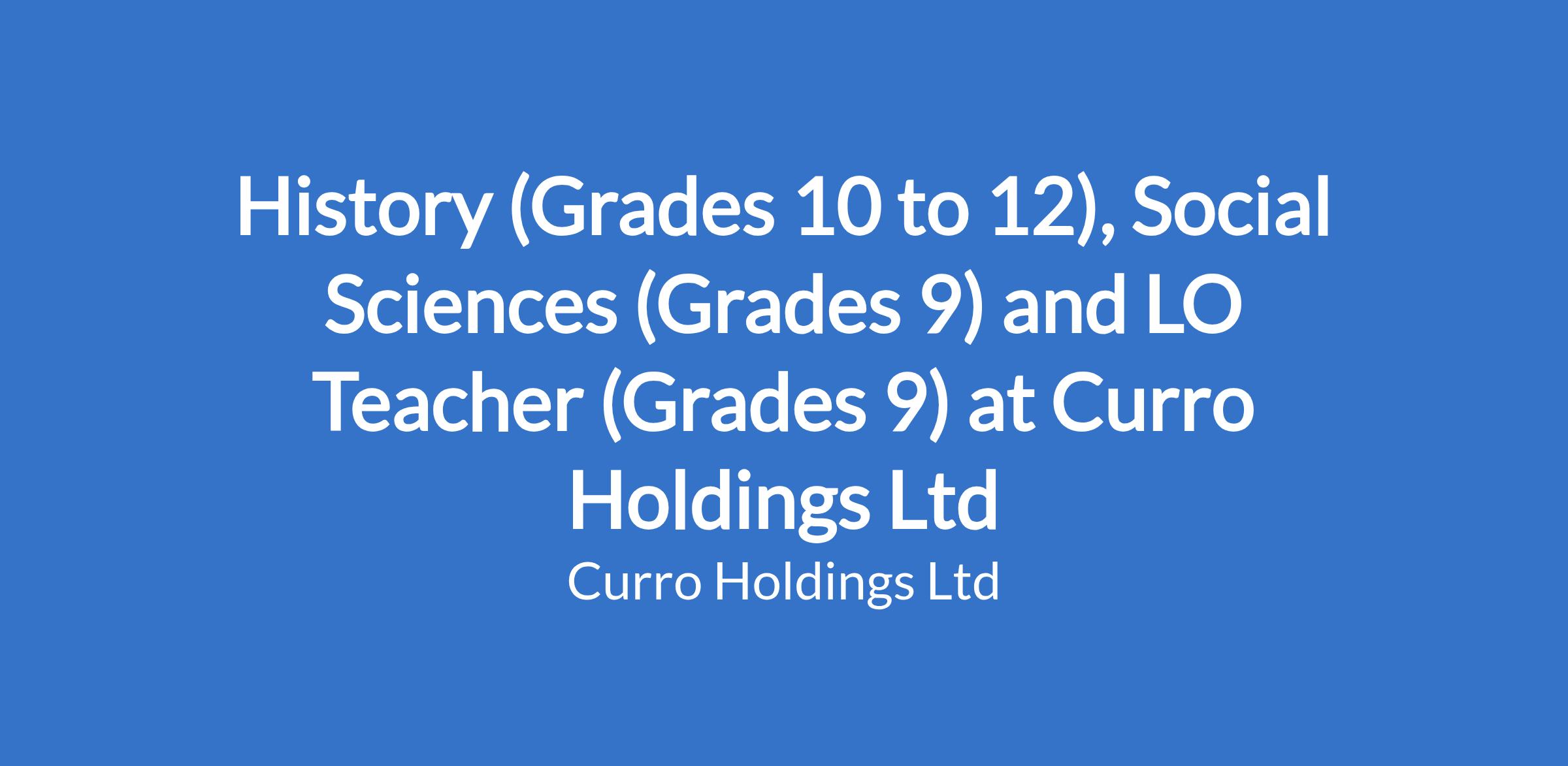 History (Grades 10 to 12), Social Sciences (Grades 9) and LO Teacher (Grades 9) at Curro Holdings Ltd