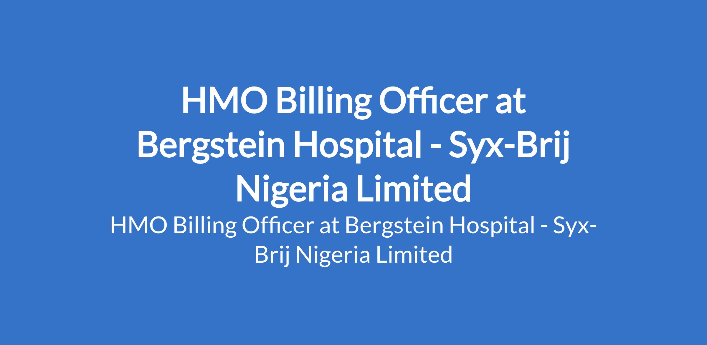 Syx-Brij Nigeria Limited - Our client, Bergstein Hospital is recruiting to fill the position of: HMO Billing Officer. The position is located in Ikorodu, Lagos State. Interested candidates should possess a Bachelors Degree or HND in Accounting, Health Information Management, Business Administration, or related fields with 24 years of experience in HMO billing or hospital billing.