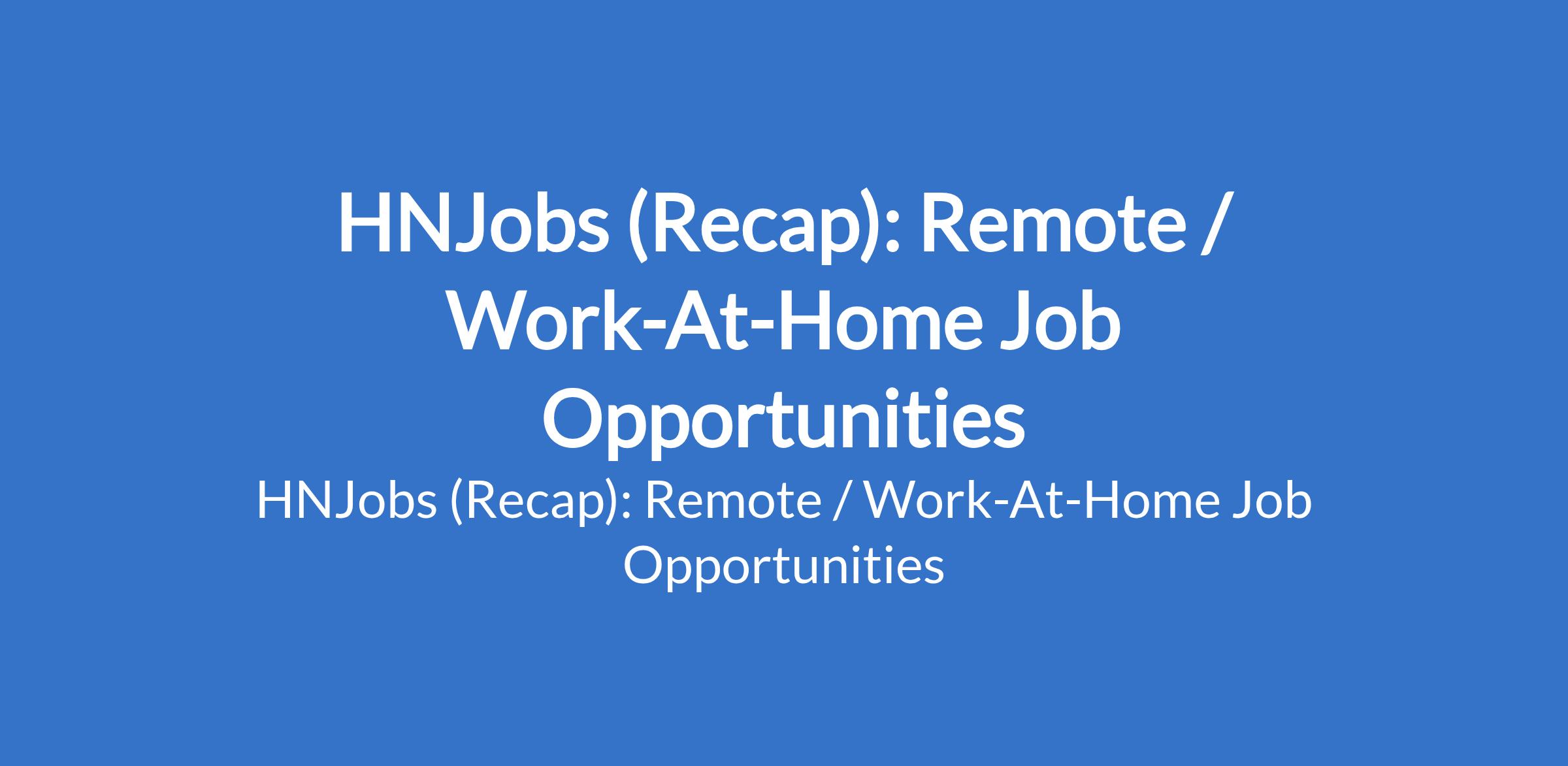 HNJobs (Recap): Remote / Work-At-Home Job Opportunities