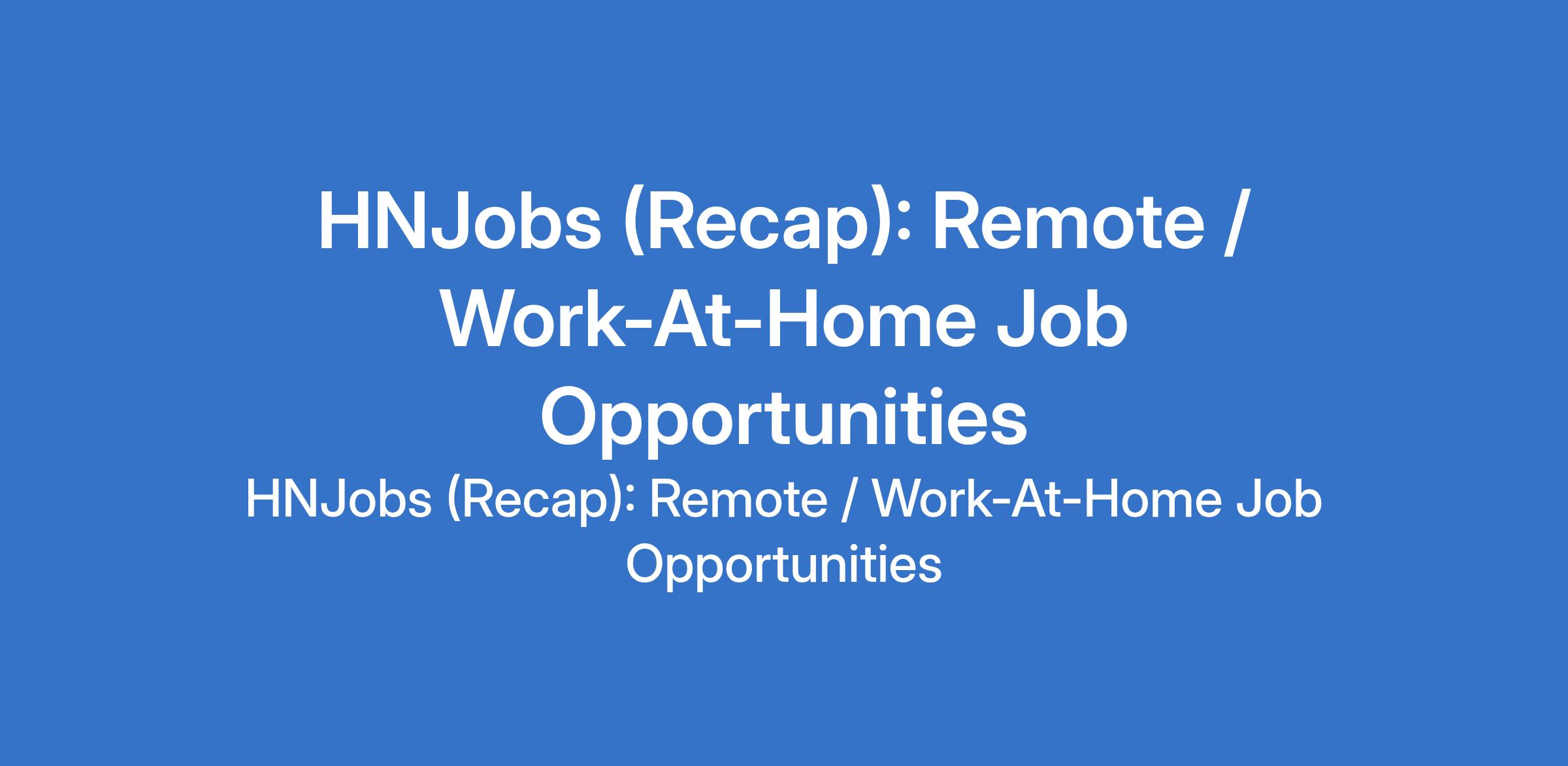 HNJobs (Recap): Remote / Work-At-Home Job Opportunities