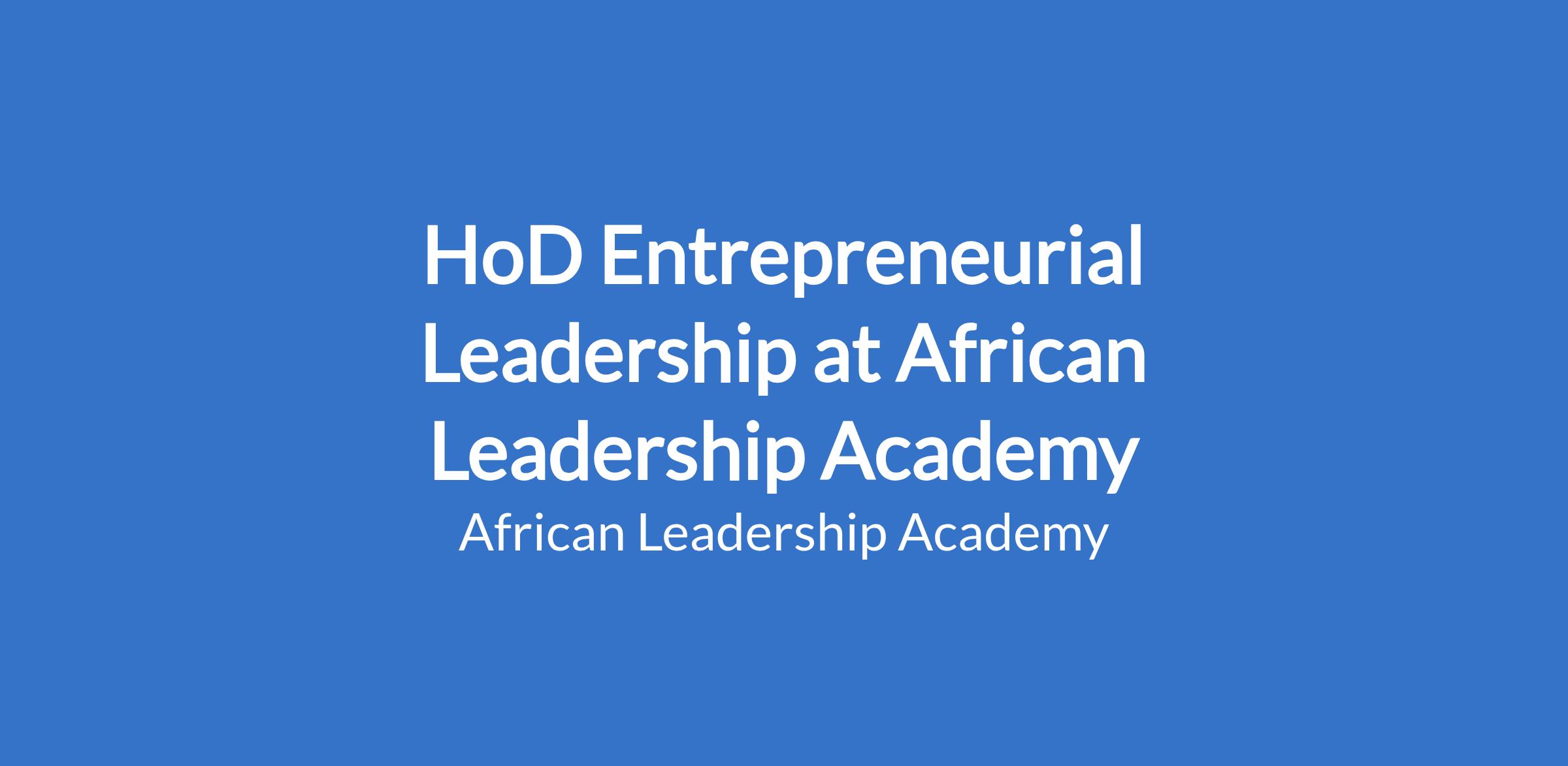 As the Head of the Entrepreneurial Leadership (EL) Department, you will: