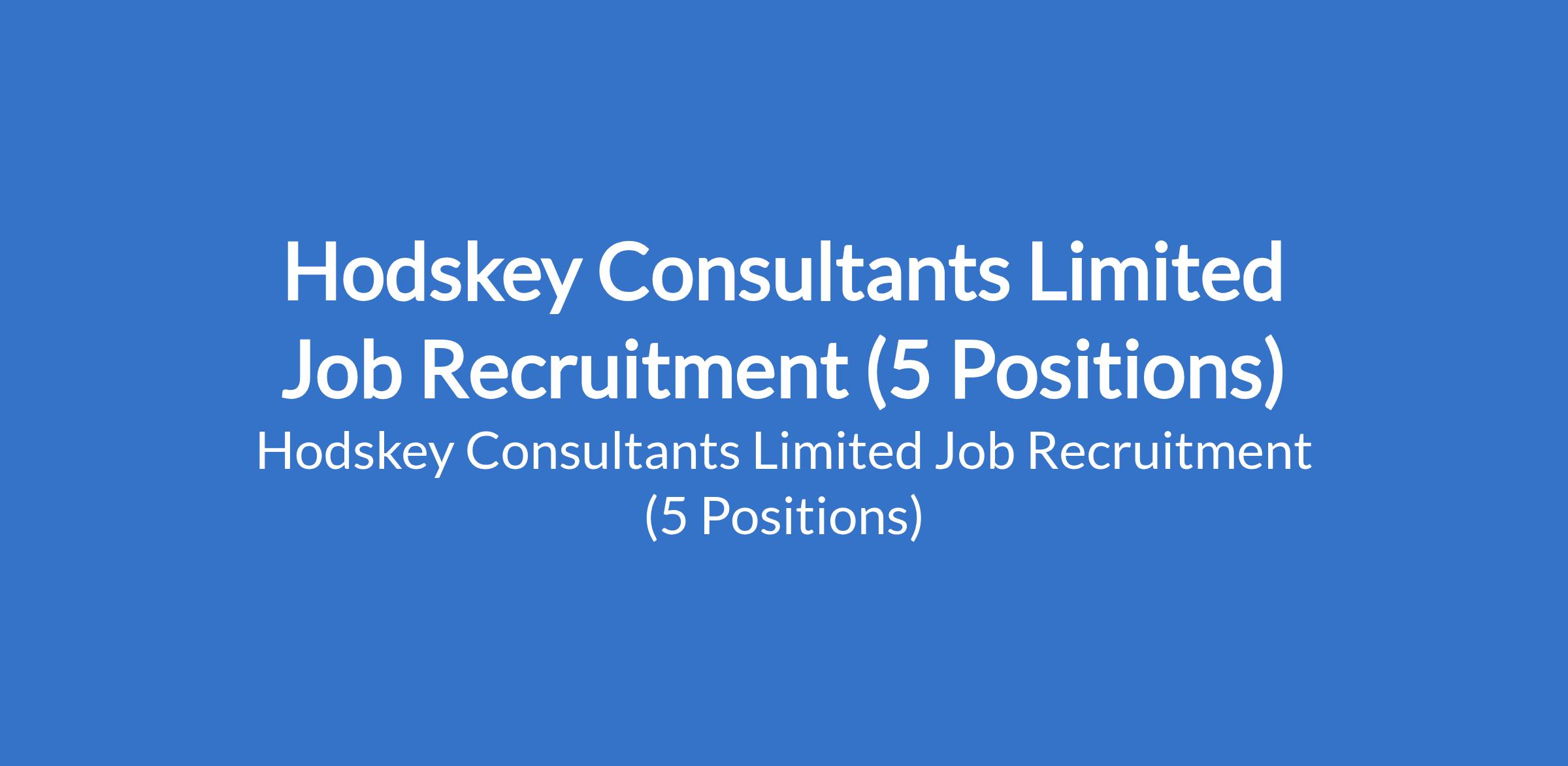 Hodskey Consultants Limited Job Recruitment (5 Positions)