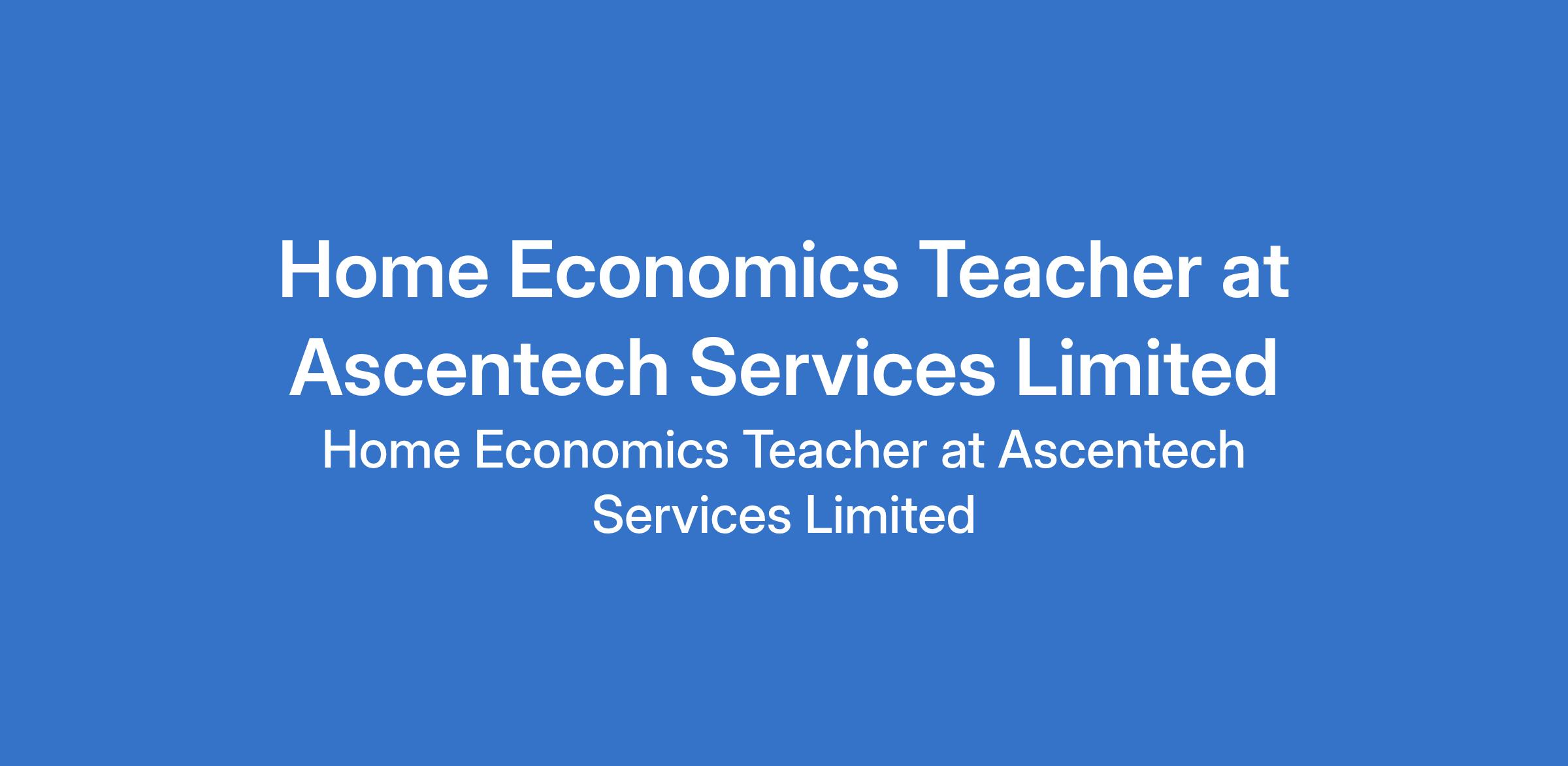 Ascentech Services Limited is recruiting to fill the position of: Home Economics Teacher. The position is located in Ibadan, Oyo State. Salary: N233,000 per month. Interested candidates should possess a minimum of B.Ed or B.Sc with PGDE (or in view) with 2+ years teaching experience.