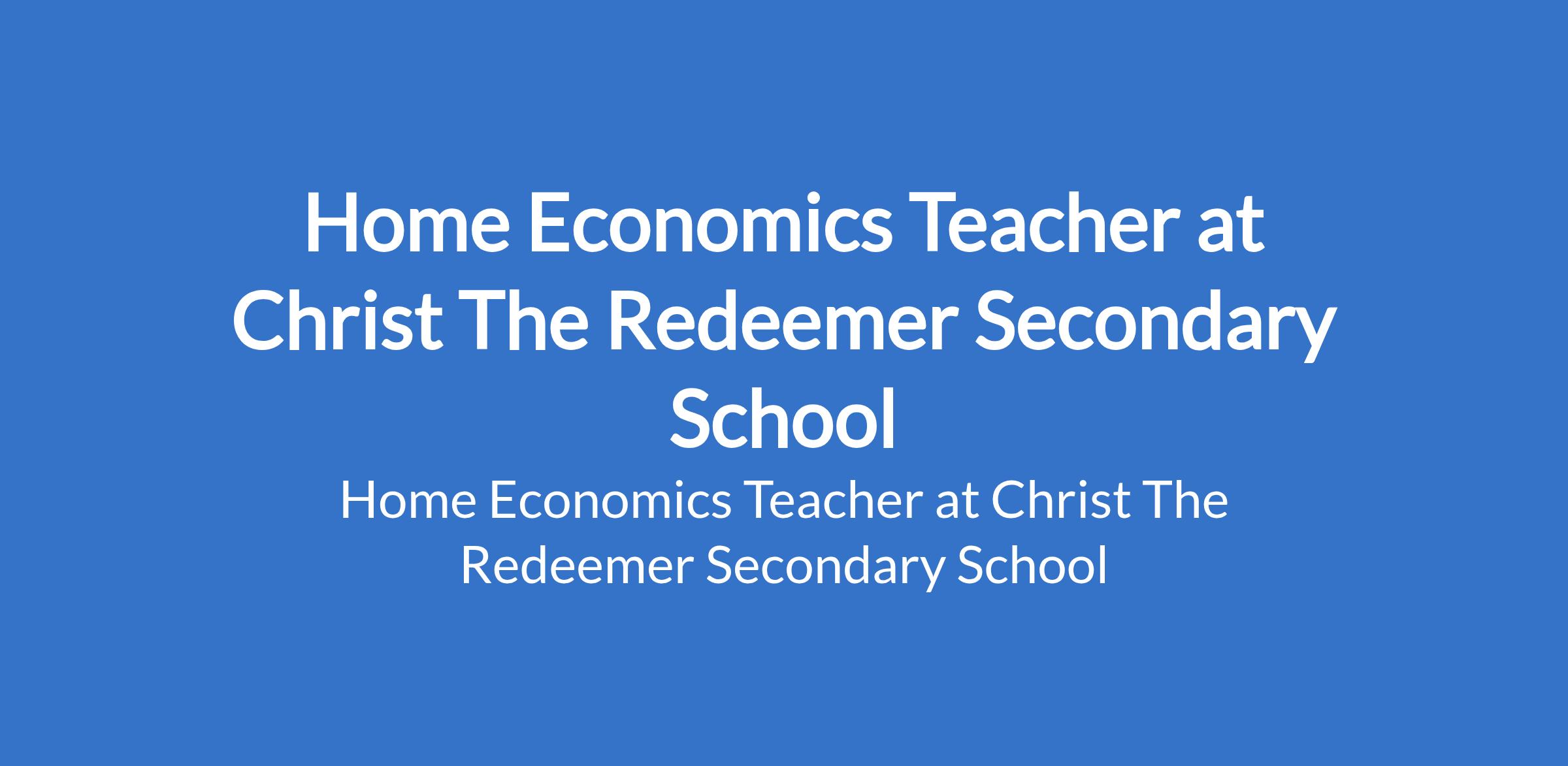 Christ The Redeemer Secondary School is recruiting to fill the position of: Home Economics Teacher. The position is located in Festac Town, Lagos State. Interested candidates should possess a B.Sc / B.A / B.Ed / HND with 1 2 years teaching experience in a recognized school.