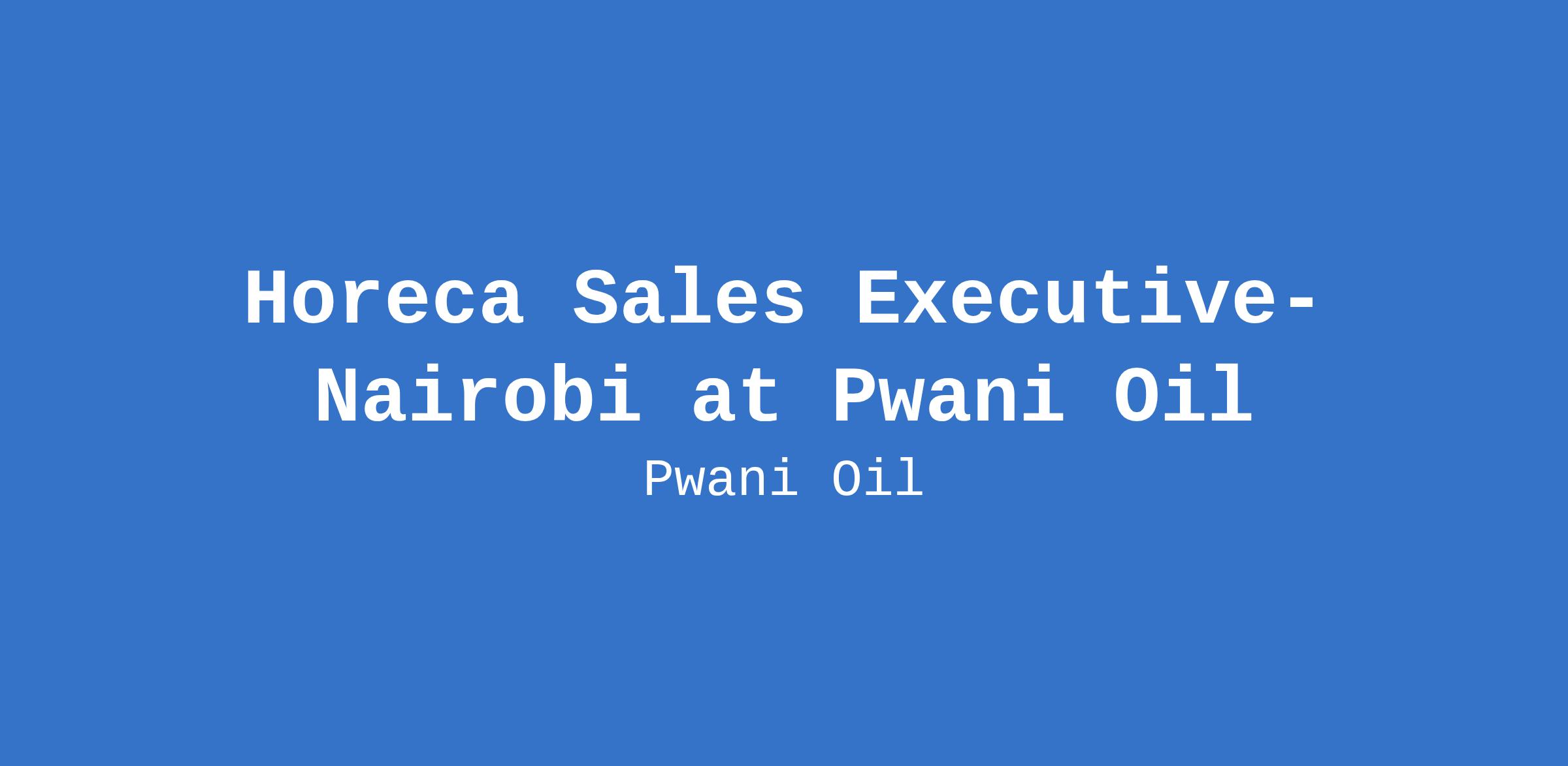 Horeca Sales Executive- Nairobi at Pwani Oil