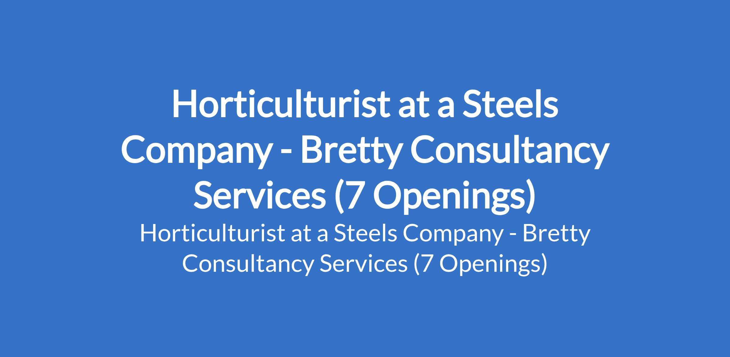 Bretty Consultancy Services - Our client, a Steels company is recruiting to fill the position of: Horticulturist. The position is located in Abuja (FCT), Benue, Kaduna, Kano, Kogi, Nasarawa, and Niger States. Interested candidates should possess an educational background in horticulture or any other related course with 5+ years of experience in horticulture or related field.