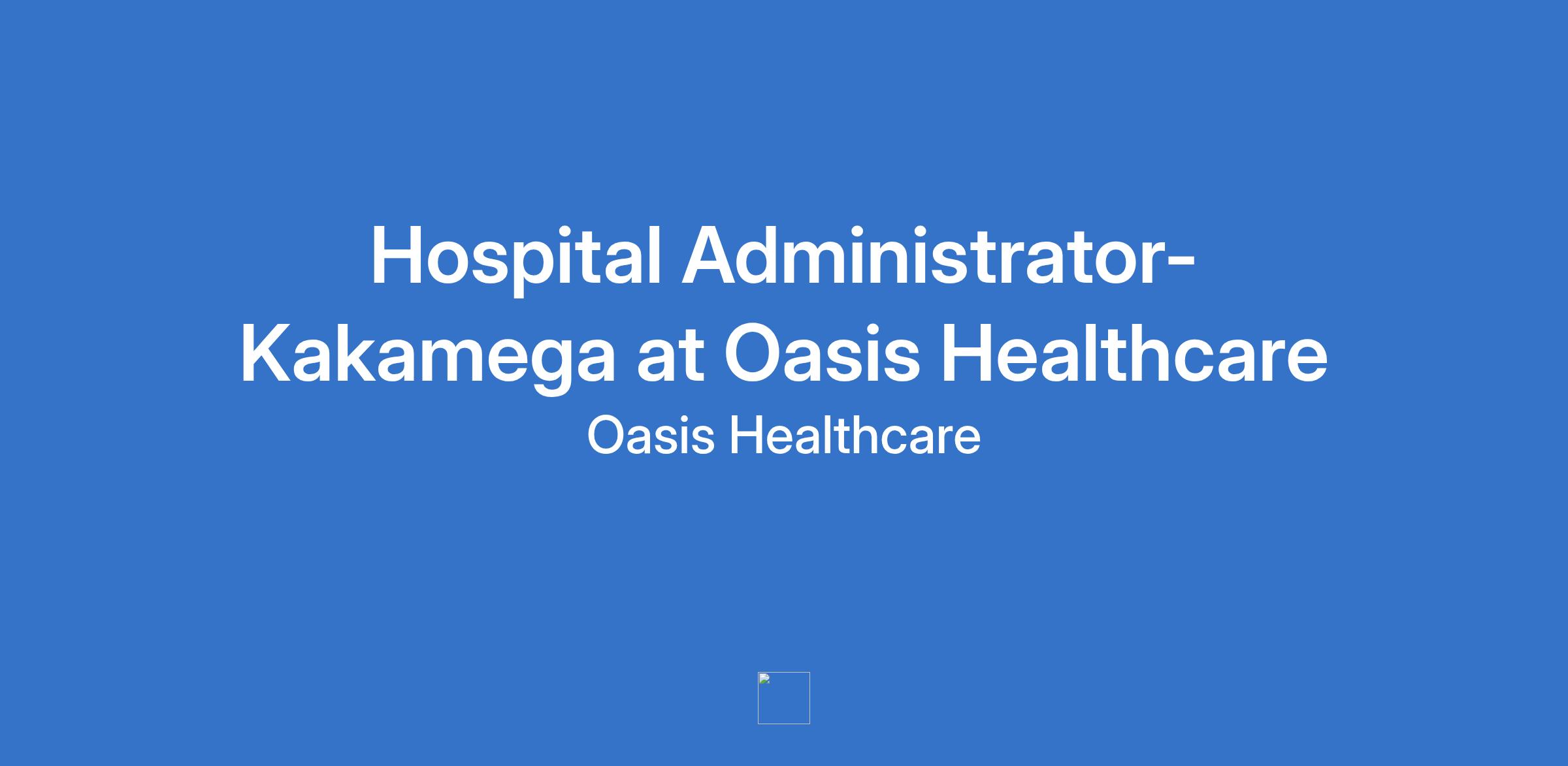 Hospital Administrator- Kakamega at Oasis Healthcare