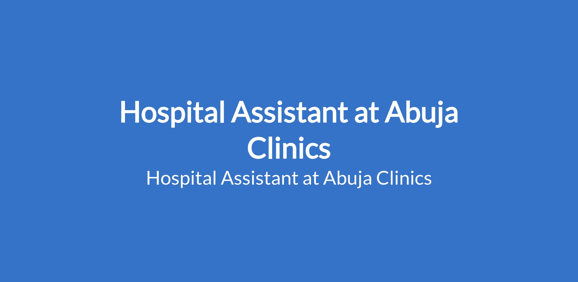 Hospital Assistant at Abuja Clinics