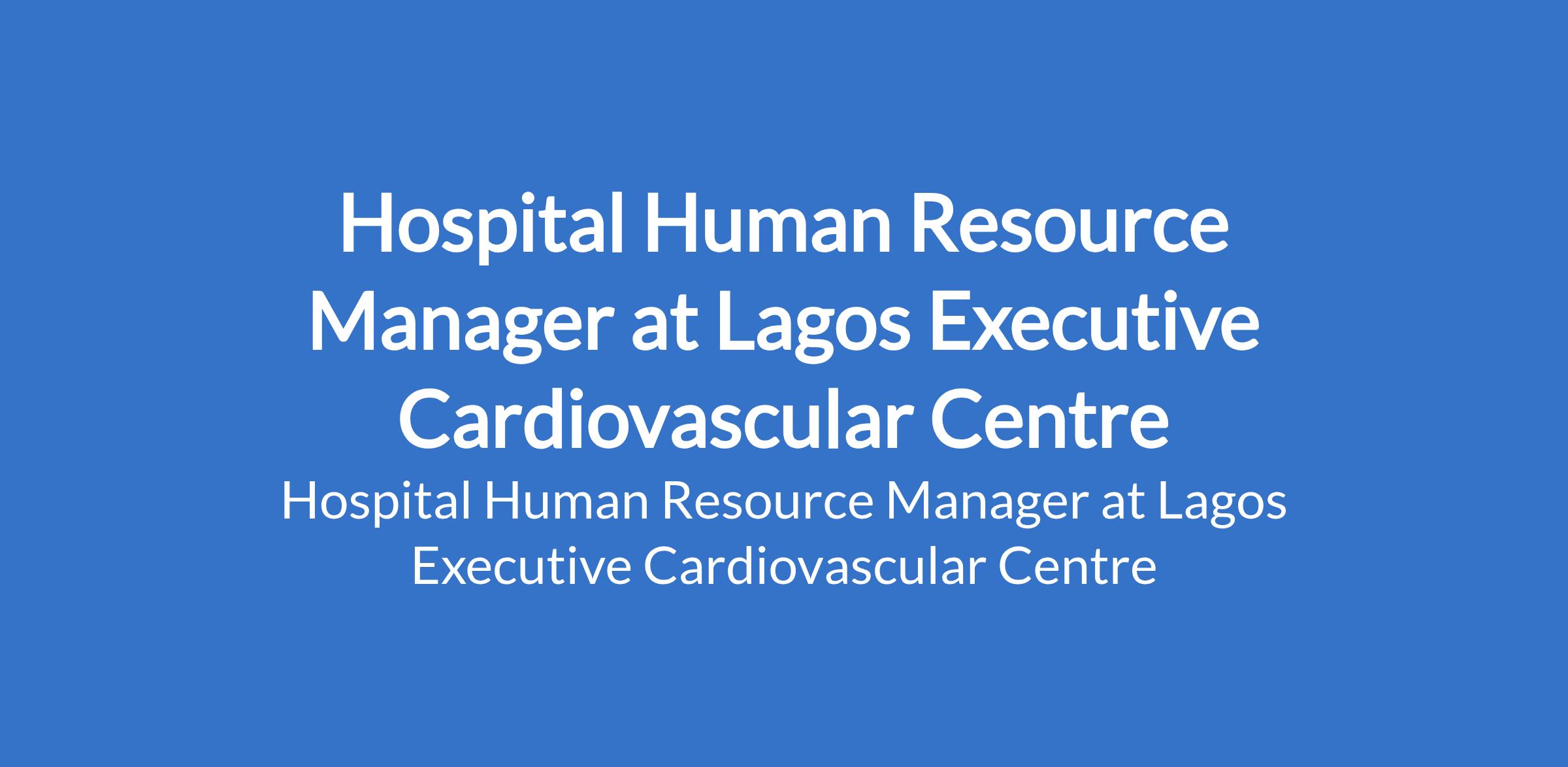 Lagos Executive Cardiovascular Centre (LECC) is recruiting to fill the position of: Hospital Human Resource Manager. The position is located in Lagos State. Interested candidates should possess a Bachelors Degree in Human Resources, Business Administration, or a related field with a minimum of 4 years of experience in human resources management, preferably in a healthcare setting.