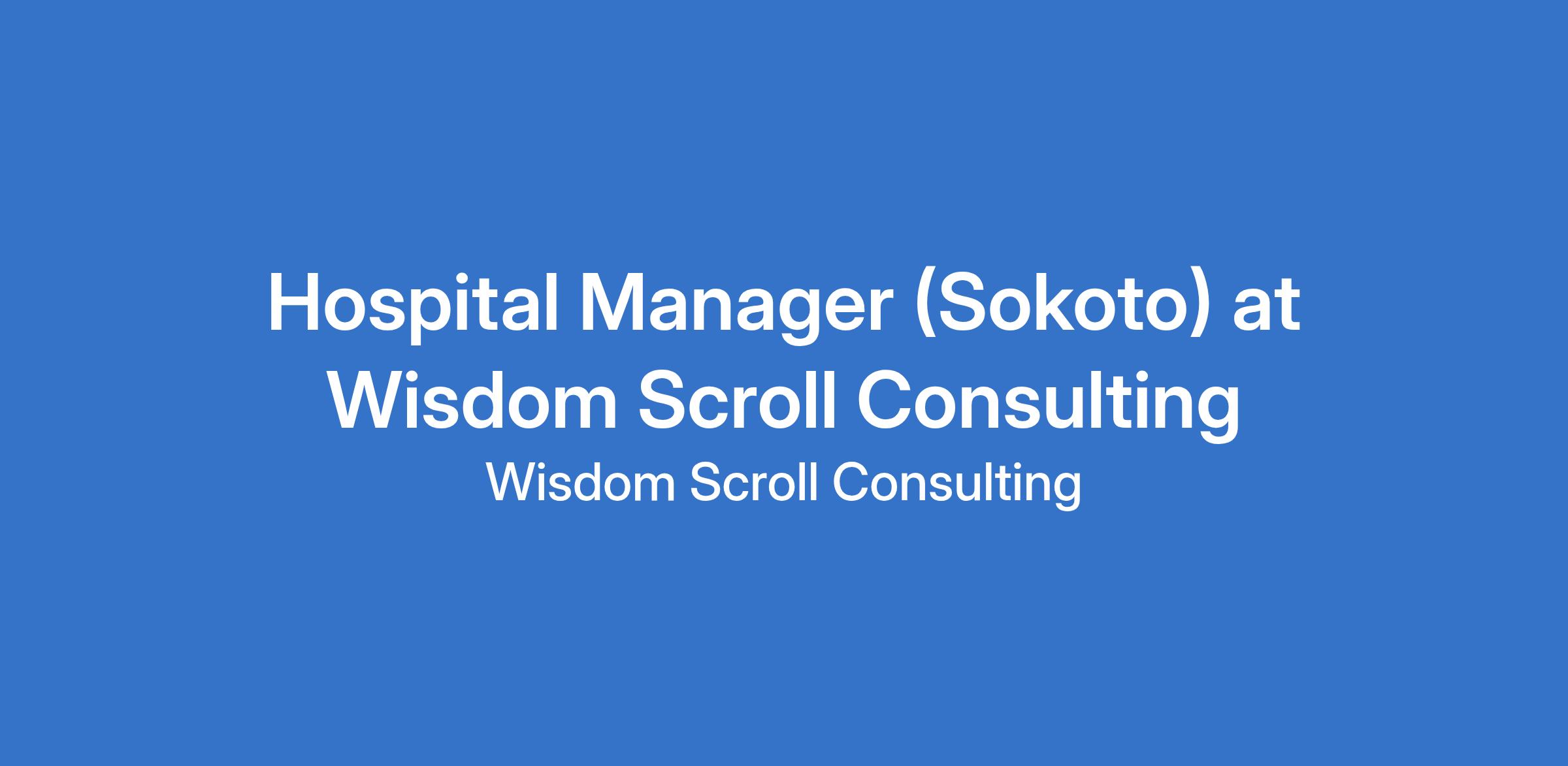 Hospital Manager (Sokoto) at Wisdom Scroll Consulting