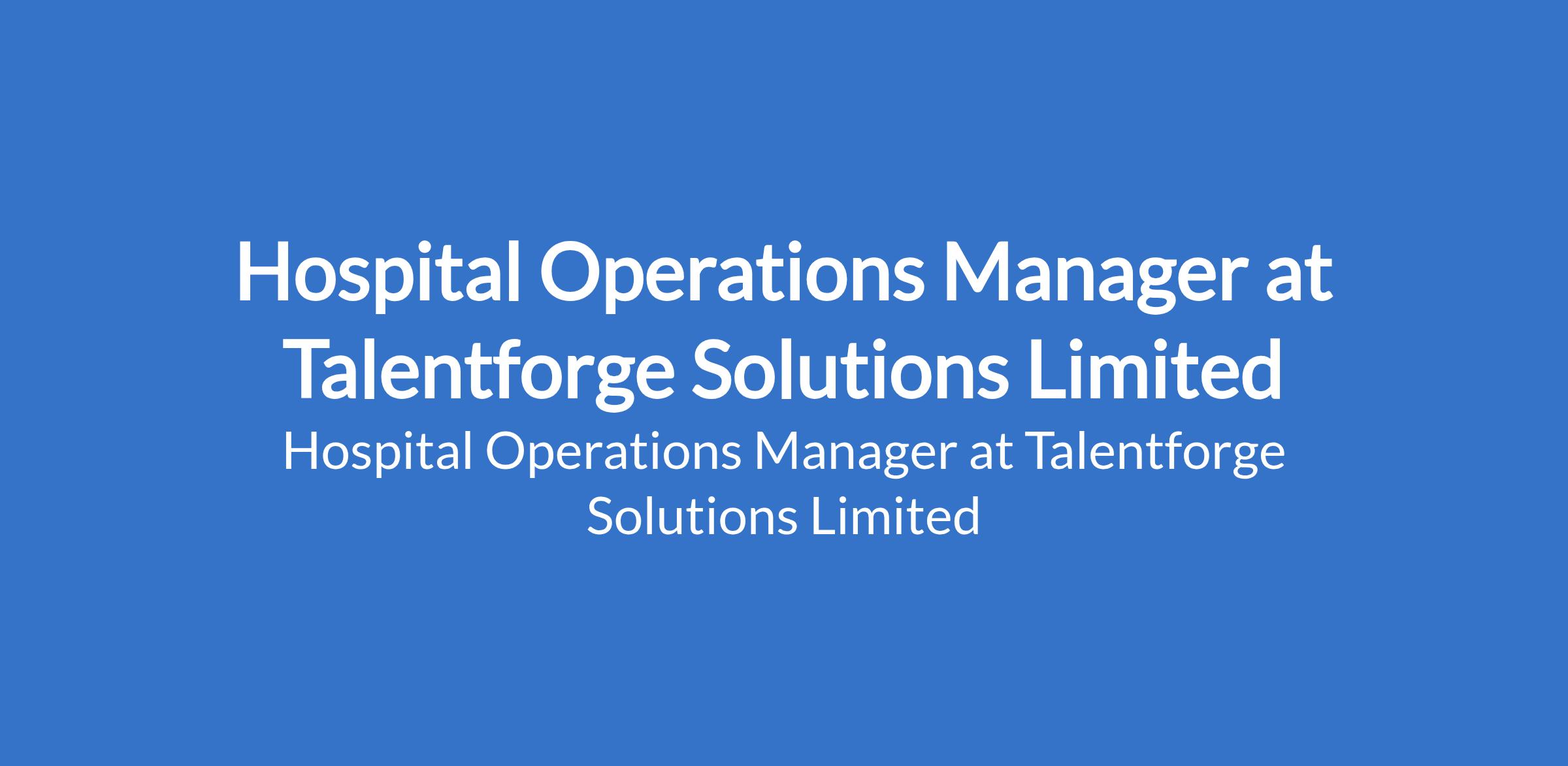 Talentforge Solutions Limited is recruiting to fill the position of: Hospital Operations Manager. The position is located in Anthony, Lagos State. Salary: N250,000 per month. Interested candidates should possess a Bachelor's Degree in Healthcare Management, Business Administration, or related fields with 3+ years of operations and office management experience in a healthcare setting.