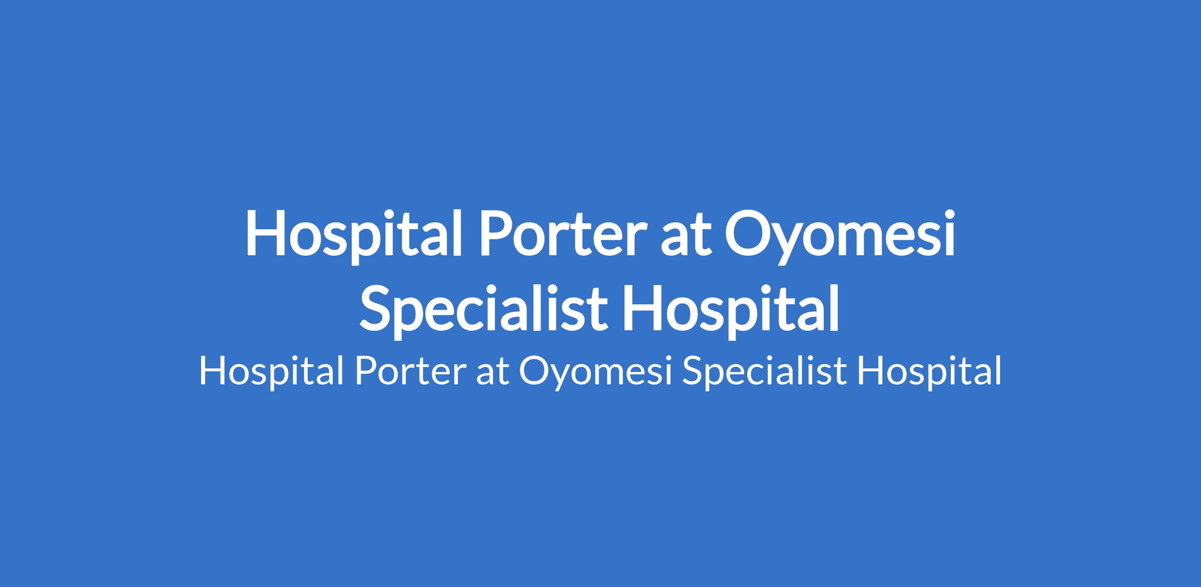 Oyomesi Specialist Hospital is recruiting to fill the position of: Hospital Porter. The position is located in Ibadan, Oyo State. Interested candidates should possess relevant qualifications with previous experience in a hospital or healthcare environment is an advantage and strong physical stamina and ability to lift, push, pull, and carry heavy items.