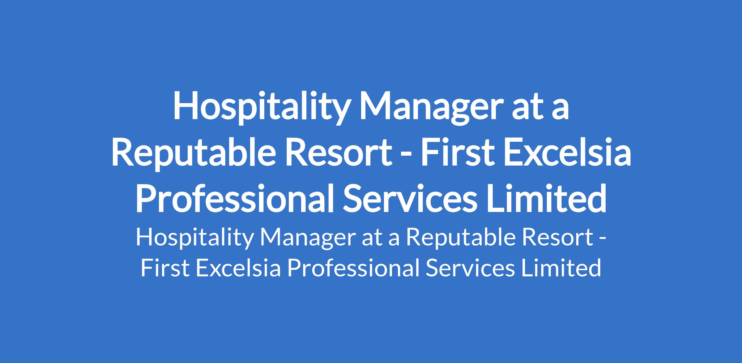 First Excelsia Professional Services Limited - Our client, a reputable Resort is recruiting to fill the position of: Hospitality Manager. The position is located in Osun State. Salary: N100,000 N150,000 per month. Interested candidates should possess a Bachelors Degree (BSc) in Hospitality Management, Tourism, or related fields with a minimum of 3 years experience in resort or hotel management.