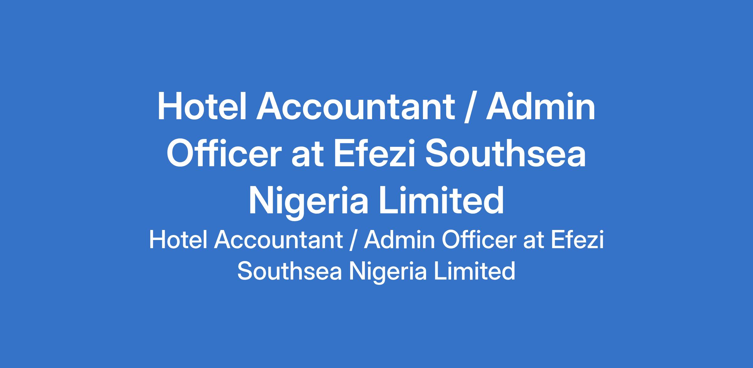Efezi Southsea Nigeria Limited is recruiting to fill the position of: Hotel Accountant / Admin Officer. The position is located in Apapa, Lagos State. Salary: N150,000 - N180,000 per month. Interested candidates should possess relevant qualifications and candidates must reside in Wilmer, Apapa, Boundary, Ajegunle, Festac and its environs.