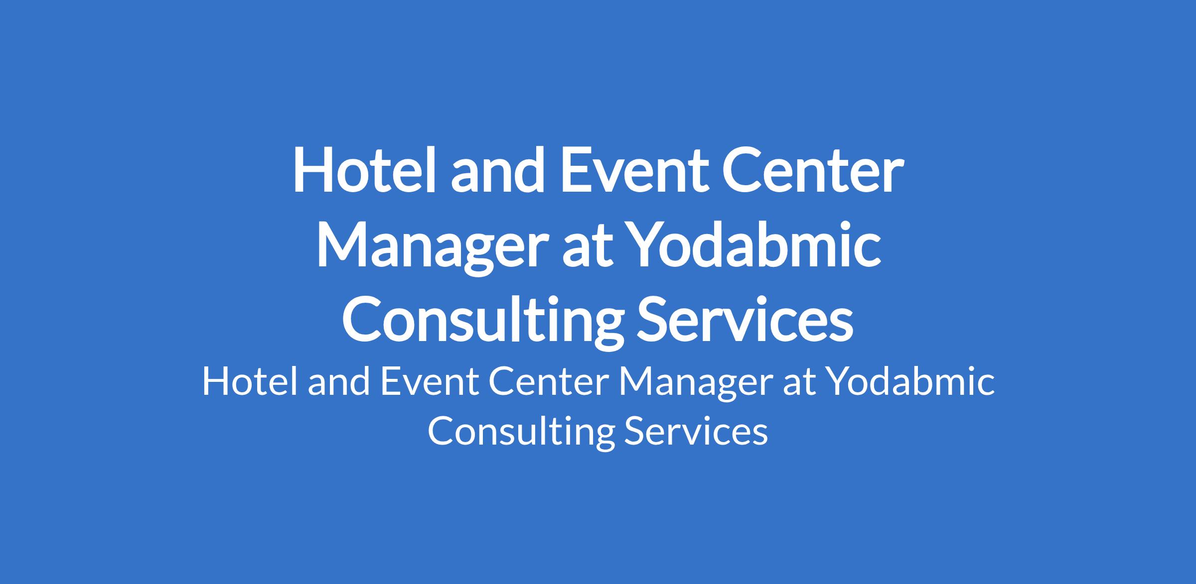Yodabmic Consulting Services is recruiting to fill the position of: Hotel and Event Center Manager. The position is located in Oyo State. Interested candidates should possess a HND / BSc in social science or related field with minimum of 3 years working experience in the same capacity.