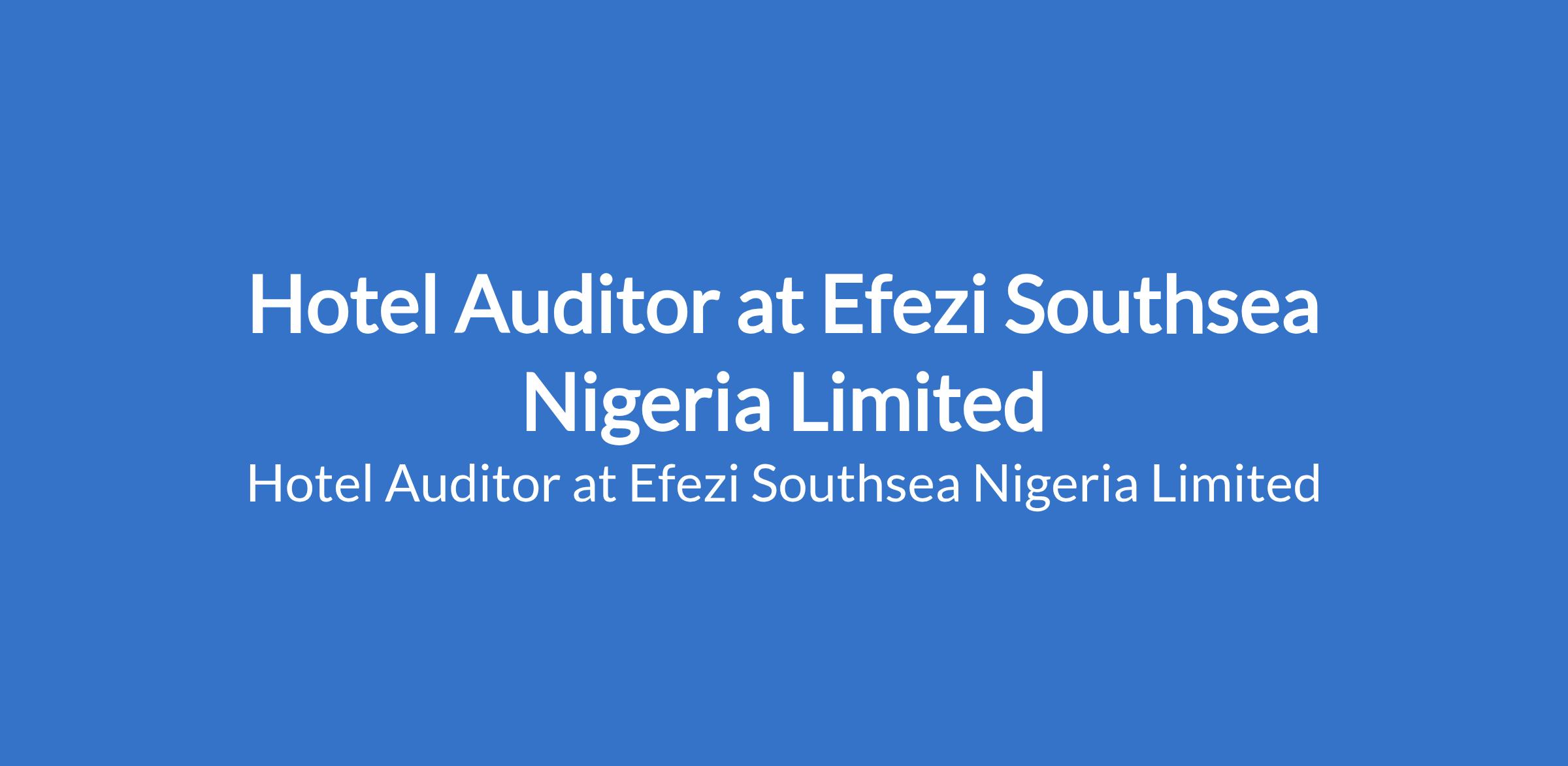 Efezi Southsea Nigeria Limited is recruiting to fill the position of: Hotel Auditor. The position is located in Gwarinpa, Abuja (FCT) State. Saalry: N250,000 - N300,000 monthly. Interested candidates should possess relevant qualifications with 10 years of experience.