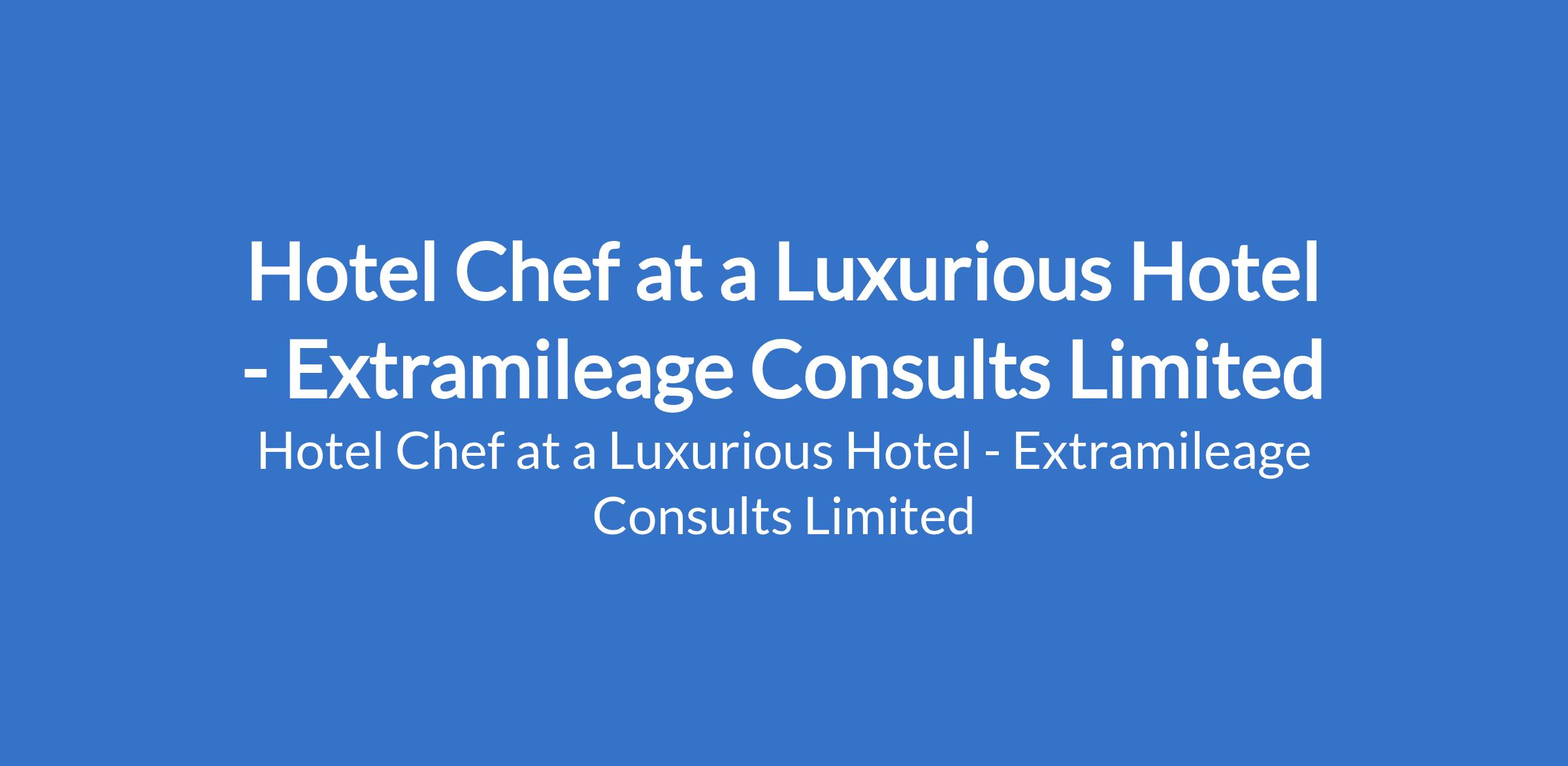 Extramileage Consults Limited - Our client, a luxurious Hotel is recruiting to fill the position of: Hotel Chef. The position is located in Ojodu-Berger, Lagos State. Salary: N200,000 monthly. Interested candidates should possess relevant qualifications.