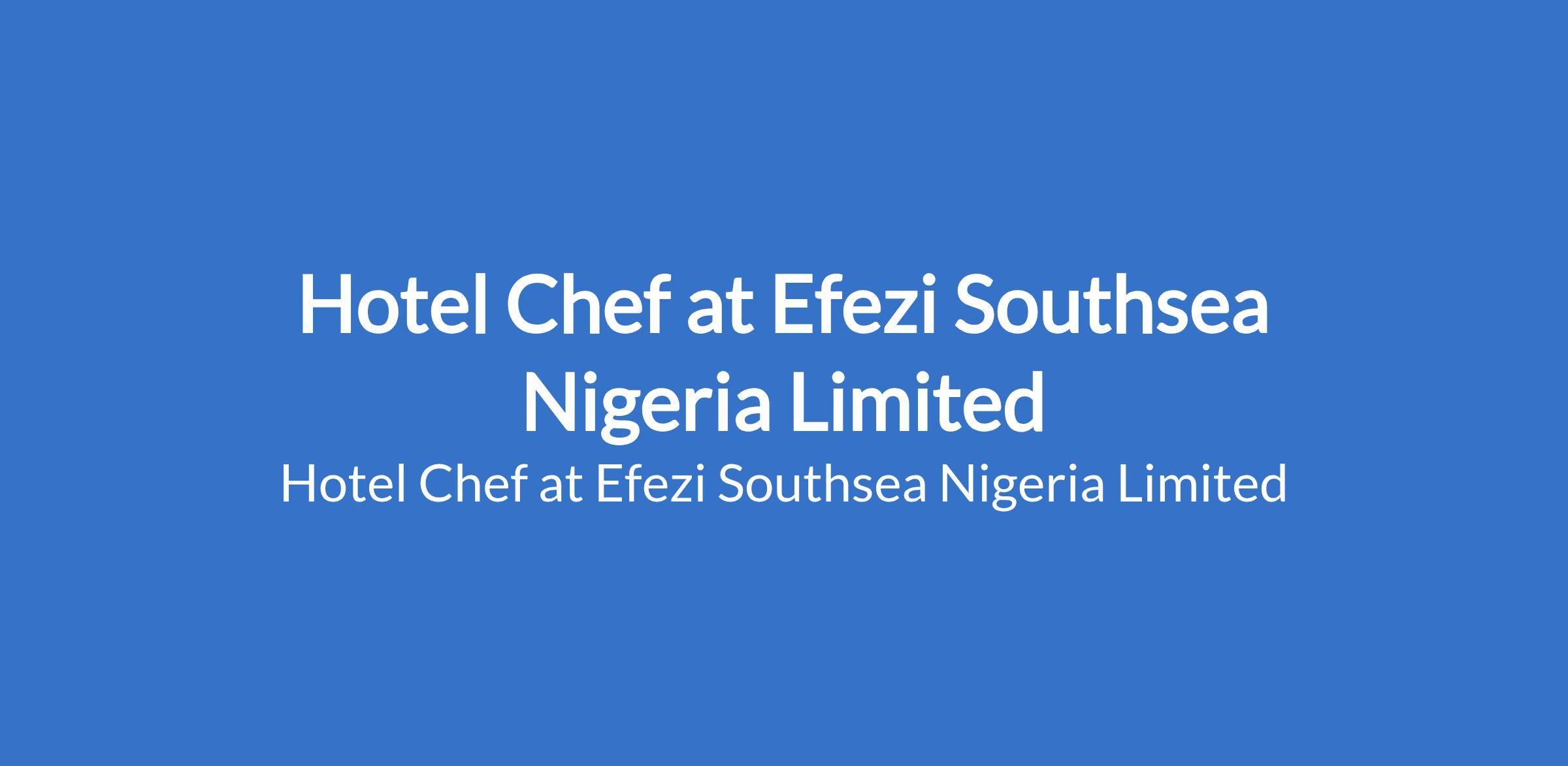 Efezi Southsea Nigeria Limited is recruiting to fill the position of: Hotel Chef. The position is located in Abule-Egba, Lagos State. Salary: N100,000 / month. Interested candidates should possess a Training in Culinary Arts or Hospitality with experience in a professional kitchen.